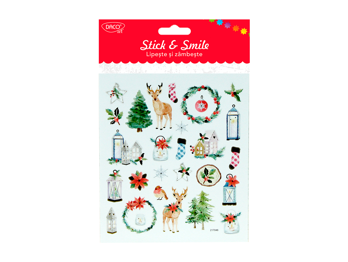 - Conținut: 1 coală cu abțibilduri de dimensiuni variate, ideale pentru proiecte festive.