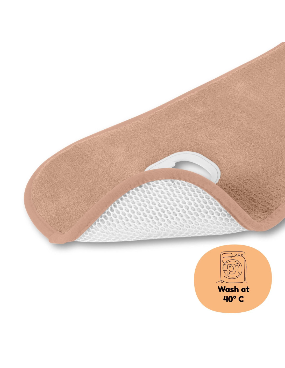 Protectia Aerosleep are incorporat in suprafata de sezut a copilului, un cearsaf, fabricat din bumbac organic 80%, moale, cu mici orificii, ce nu obtureaza circulatia aerului, sporind astfel, confortul.