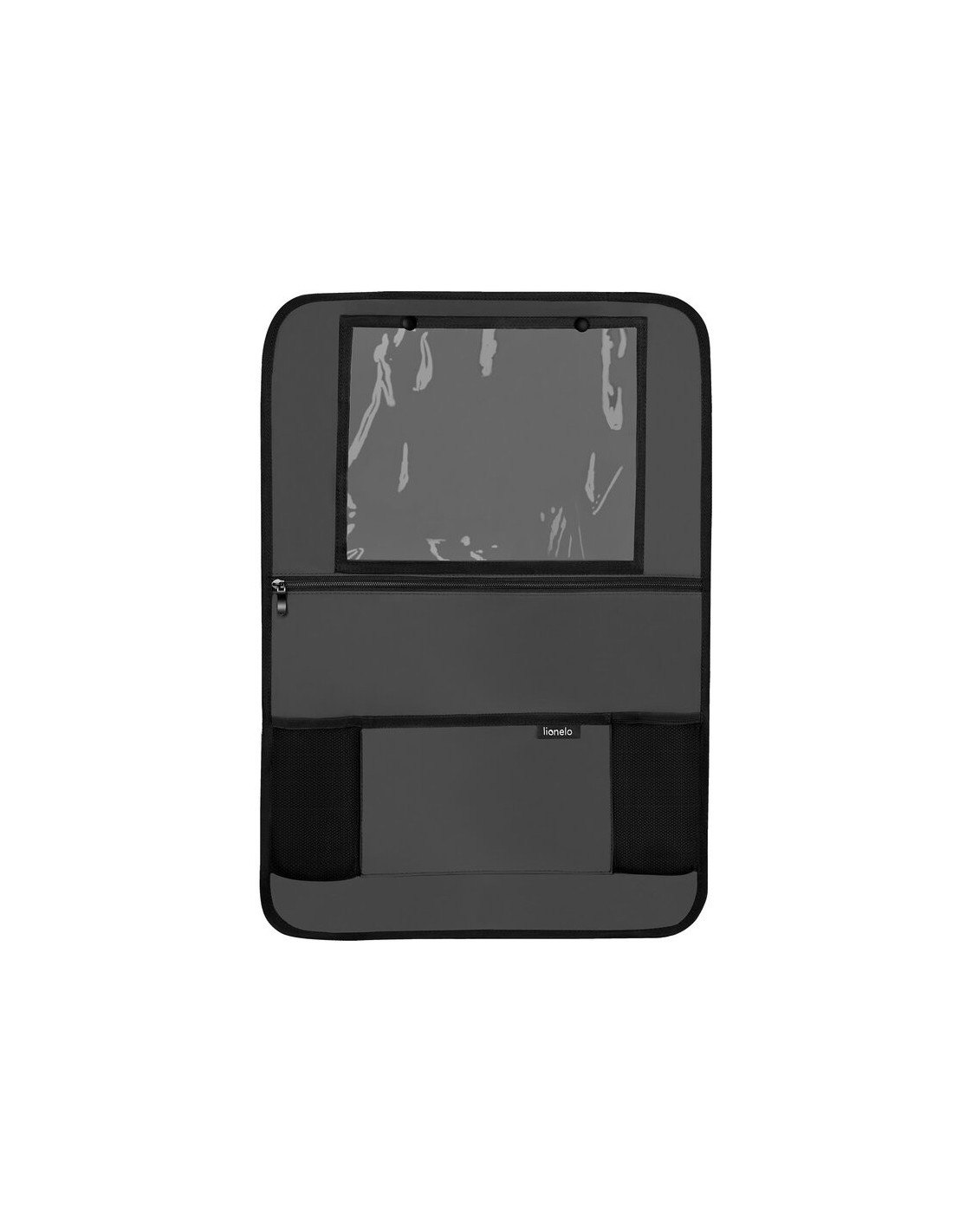 Organizator auto, Lionelo, Cu 5 buzunare de diferite dimensiuni, Cu buzunar pentru tableta, Montare cu clema, Piele ecologica, Impermeabila, Gri