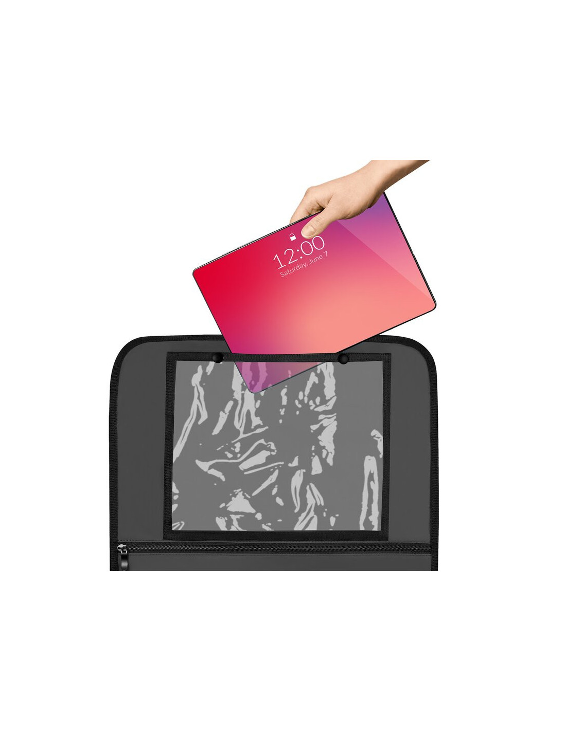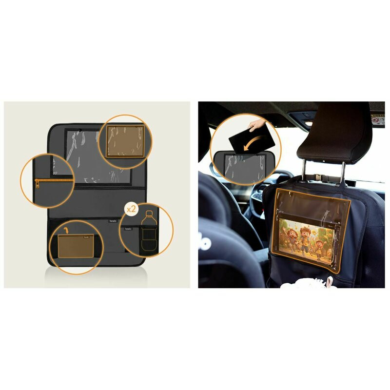 Organizatorul dispune de 5 buzunare de dimensiuni diferite, oferind un spatiu bine structurat pentru toate lucrurile esentiale. Unul dintre buzunare este special conceput pentru o tableta, astfel incat copilul sa se poata bucura de desene animate in timpul calatoriei. De asemenea, ofera acces facil la gustari sau bauturi pe durata drumului.
