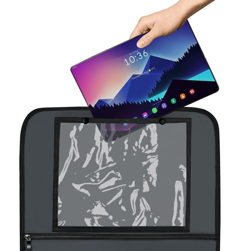 Un compartiment securizat cu fereastra transparenta permite utilizarea usoara a ecranului tactil, oferindu-i copilului acces la divertisment fara a scoate dispozitivul. Tableta ramane protejata si curata.