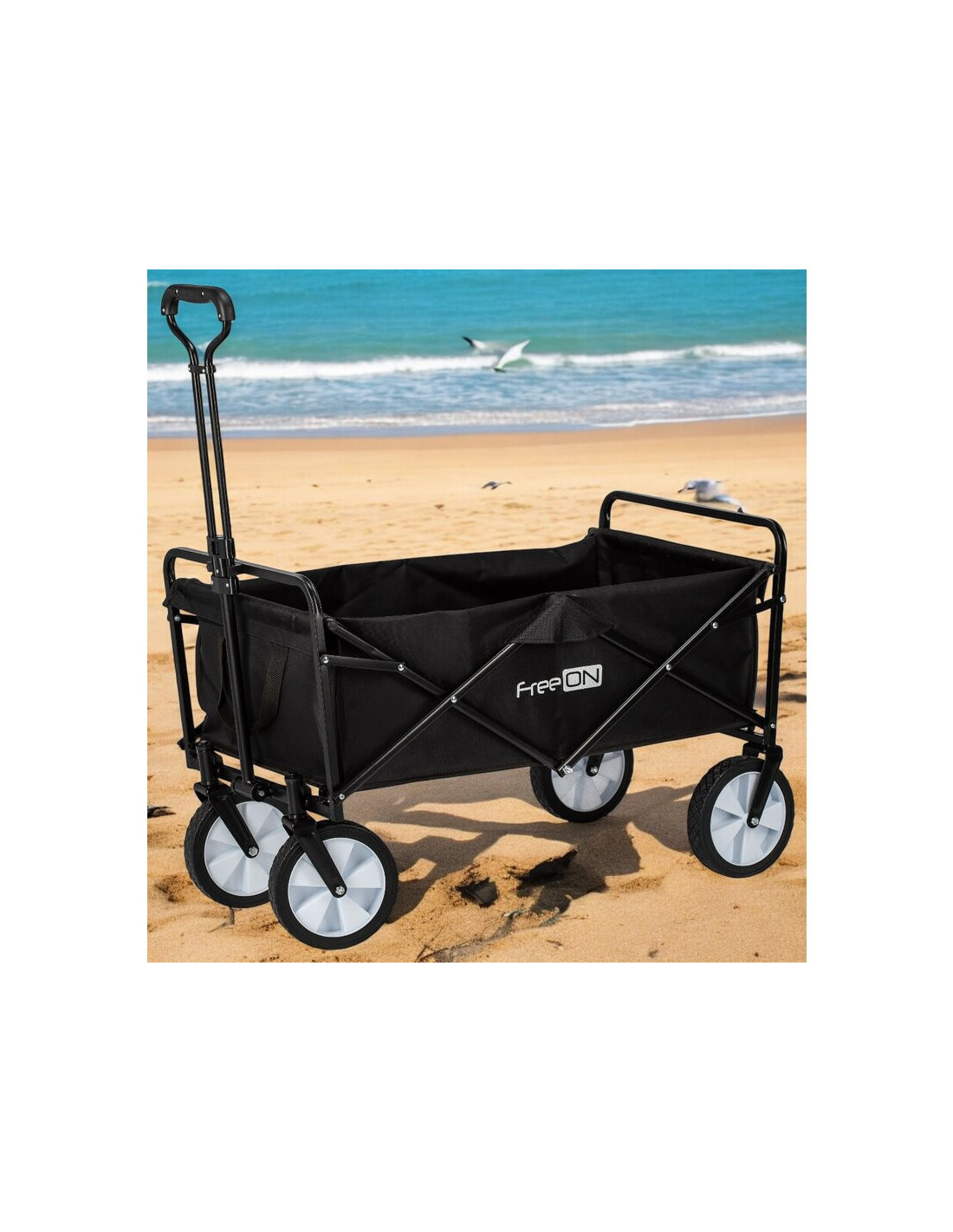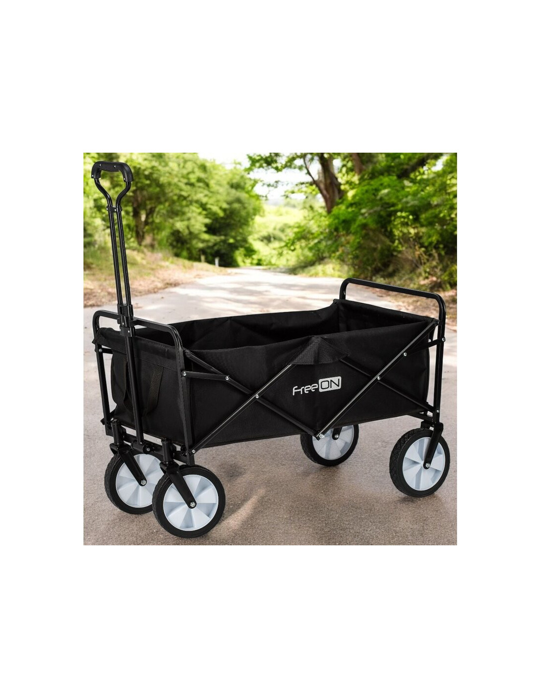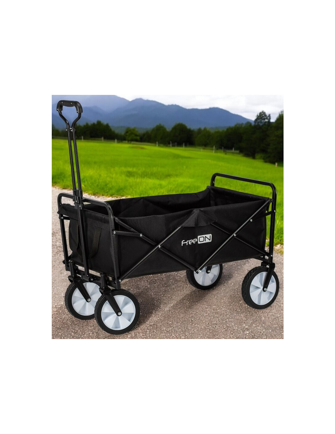 Carucior pliabil, FreeON, Pentru transportul diferitelor obiecte atat in casa, cat si in vacanta, Cu 2 buzunare, Maner reglabil 71-101 cm, Pana la 100 kg, 95x54x101 cm, Black