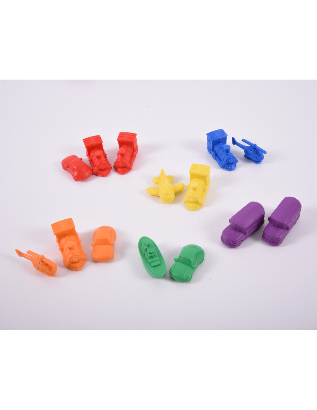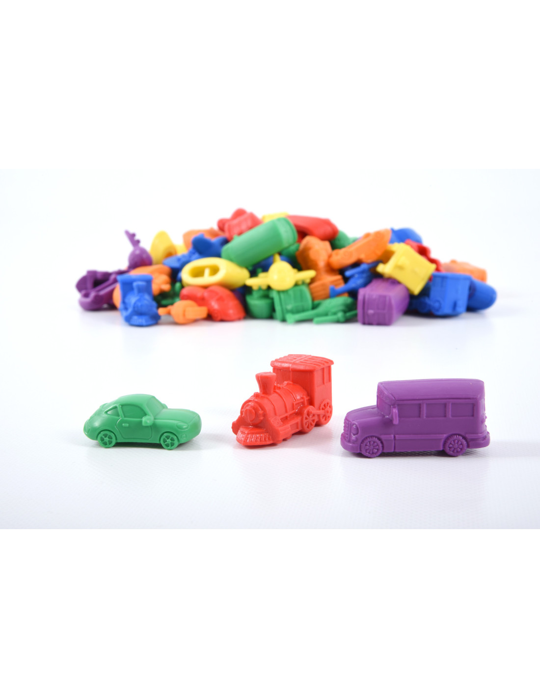 Joc sortare Mijloace de transport , Set de 72 piese educative multicolore Descopera lumea transportului prin joaca Setul contine 72 de figurine detaliate reprezentand 6 tipuri de mijloace de transport (autobuz, masina, elicopter, avion, remorcher si tren), fiecare disponibil in 6 culori vii: rosu, albastru, verde, galben, violet si portocaliu. Figurinele au dimensiunea de aproximativ 40 mm, potrivita pentru mainile copiilor. Invatare prin sortare si numarare Jocul este ideal pentru activitati de numarare, sortare, clasificare si crearea de modele. De asemenea, poate fi folosit pentru exersarea operatiilor matematice simple: adunare, scadere, impartire si inmultire. Beneficii educative Setul contribuie la dezvoltarea mai multor arii curriculare: Matematica: numarare, sortare si exercitii de baza Dezvoltare fizica: abilitati motrice fine prin manipulare Intelegerea lumii: recunoasterea culorilor si a mijloacelor de transport Arte plastice: joc imaginativ si creativitate Detalii produs Numar piese: 72 elemente de transport Tipuri: 6 mijloace de transport diferite Culori: 6 nuante variate Dimensiune element: aprox. 40 mm Ambalaj: punga cu fermoar 22 Ãmdash; 17 Ãmdash; 4 cm Greutate: 0,5 kg Varsta recomandata: 3+ ani