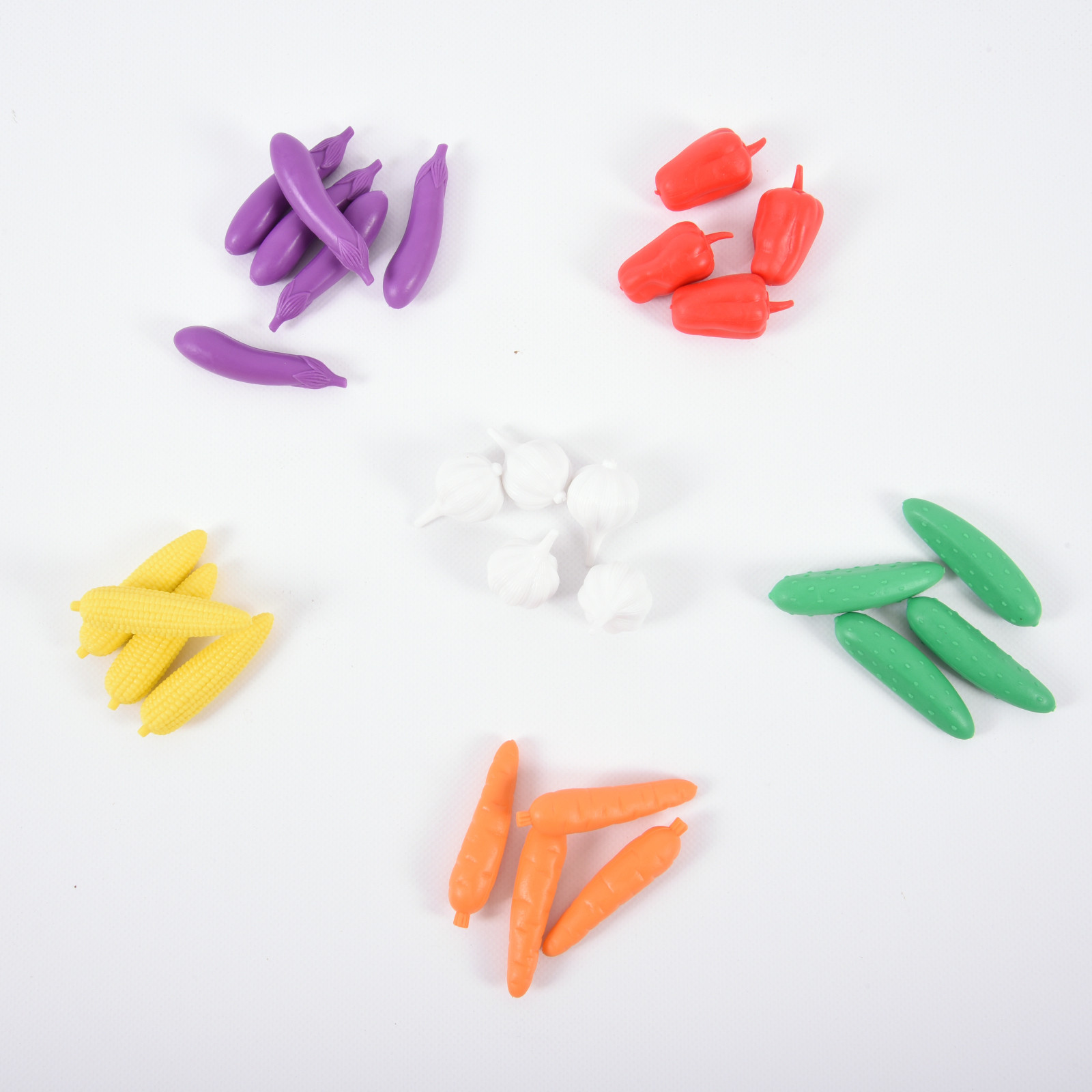 Set de Sortare Legume - Joc Educational pentru Copii Acest set de sortare cu elemente in forma de legume este perfect pentru dezvoltarea abilitatilor cognitive si motorii ale celor mici. Cu 6 legume colorate, copiii pot invata sa sorteze, sa numere si sa recunoasca culorile intr-un mod jucaus si educativ. Continut: Legume incluse: Ardei rosii Morcovi portocalii Porumb galben Usturoi alb Vinete mov Castraveti verzi Numar de elemente: 144 Specificatii: Dimensiune element: Aproximativ 40 mm Greutate: 500 g Dimensiuni sacosa: 25 x 20 x 4 cm Varsta recomandata: Incepand cu 3 ani Beneficii educationale: Matematica: Dezvoltarea abilitatii de numarare si sortare a obiectelor Abilitati motrice: Imbunatatirea dexteritatii si a coordonarii ochi-mana Cunostinte despre mediu: Recunoasterea culorilor si a formelor diferitelor legume Creativitate: Sprijina jocul imaginativ si activitatile artistice Acest set de sortare este un mod fantastic de a invata prin joc, oferind o combinatie de invatare activa si distractie pentru cei mici!