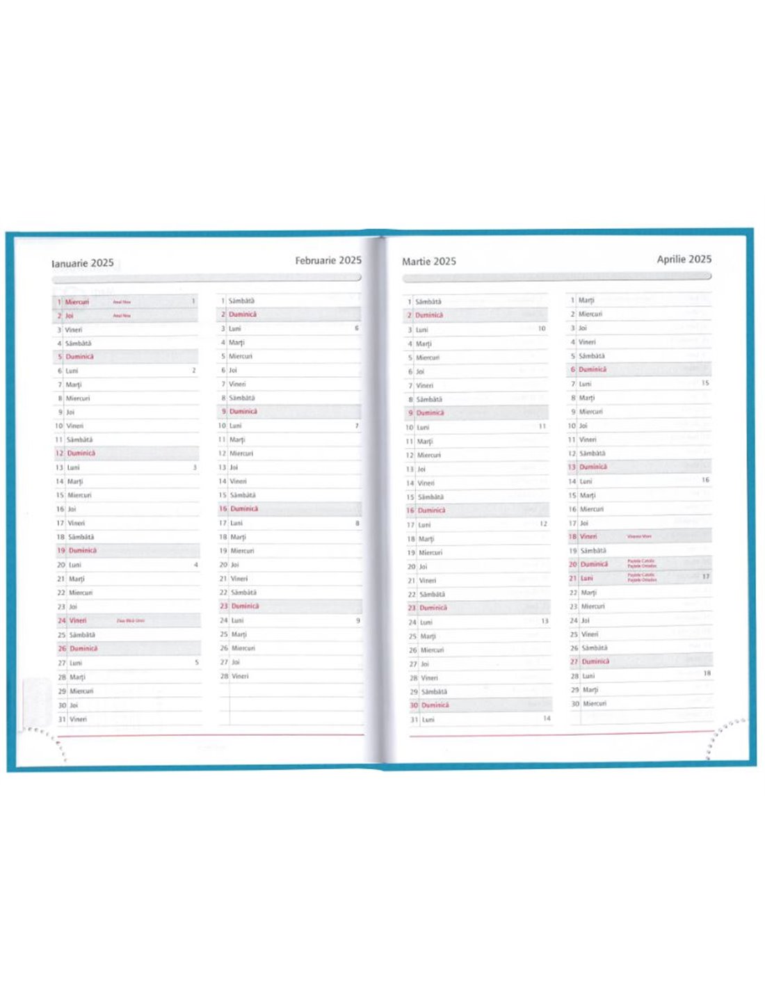 - 1 zi - 1 pagină (sâmbătă și duminică sunt pe aceeași pagină)