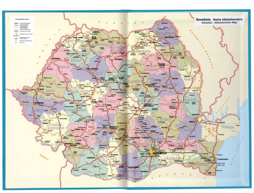 - Harta României pe ultima pagină și pe copertă (administrativă)