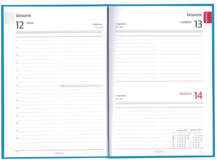 - 1 zi - 1 pagină (sâmbătă și duminică sunt pe aceeași pagină)