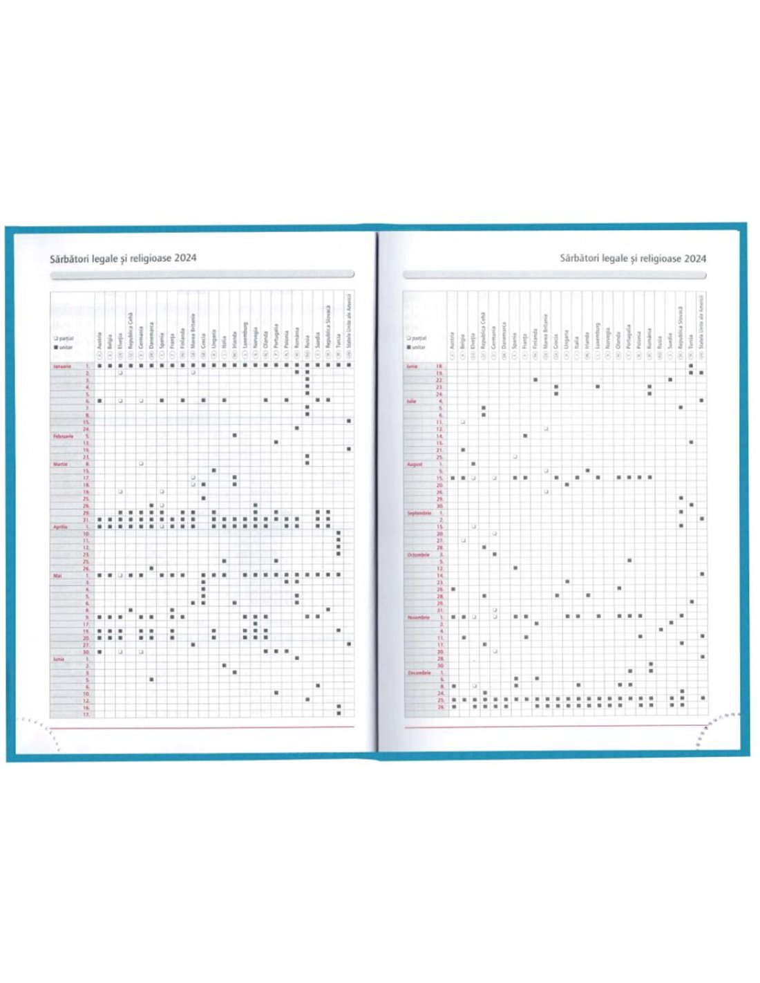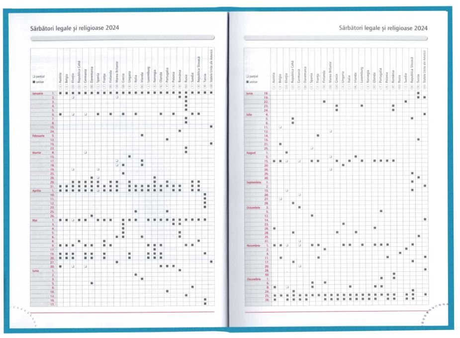 - Sărbători legale și religioase pentru anul 2024 (la începutul agendei)