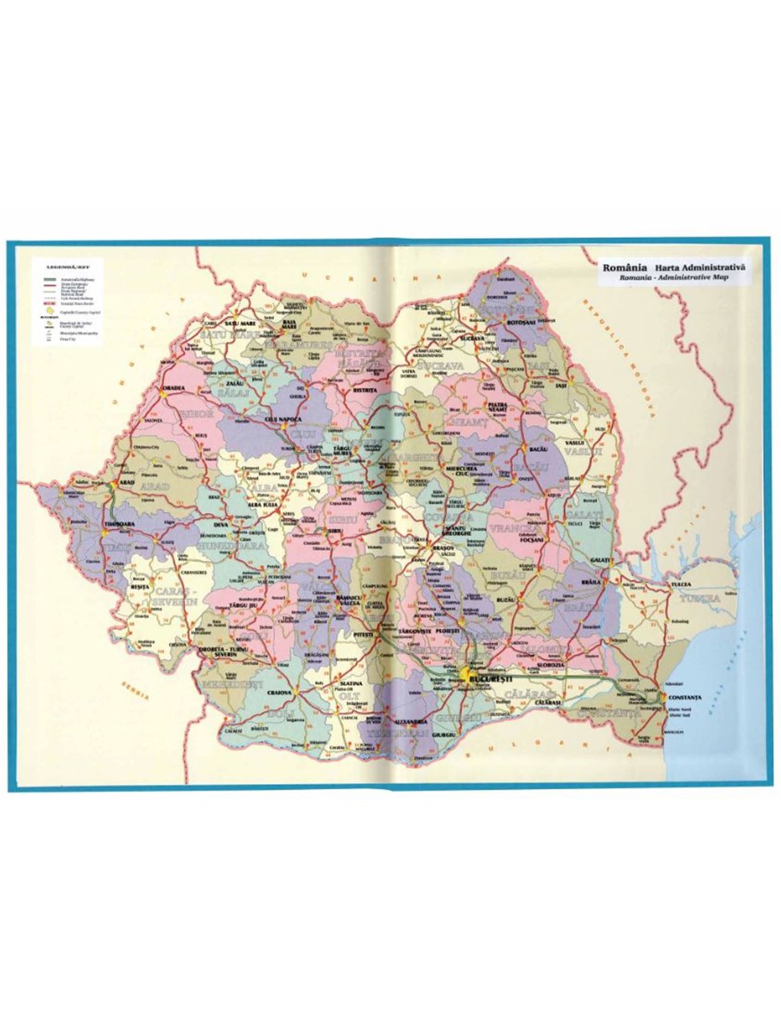 - Harta României pe ultima pagină și pe copertă (administrativă)