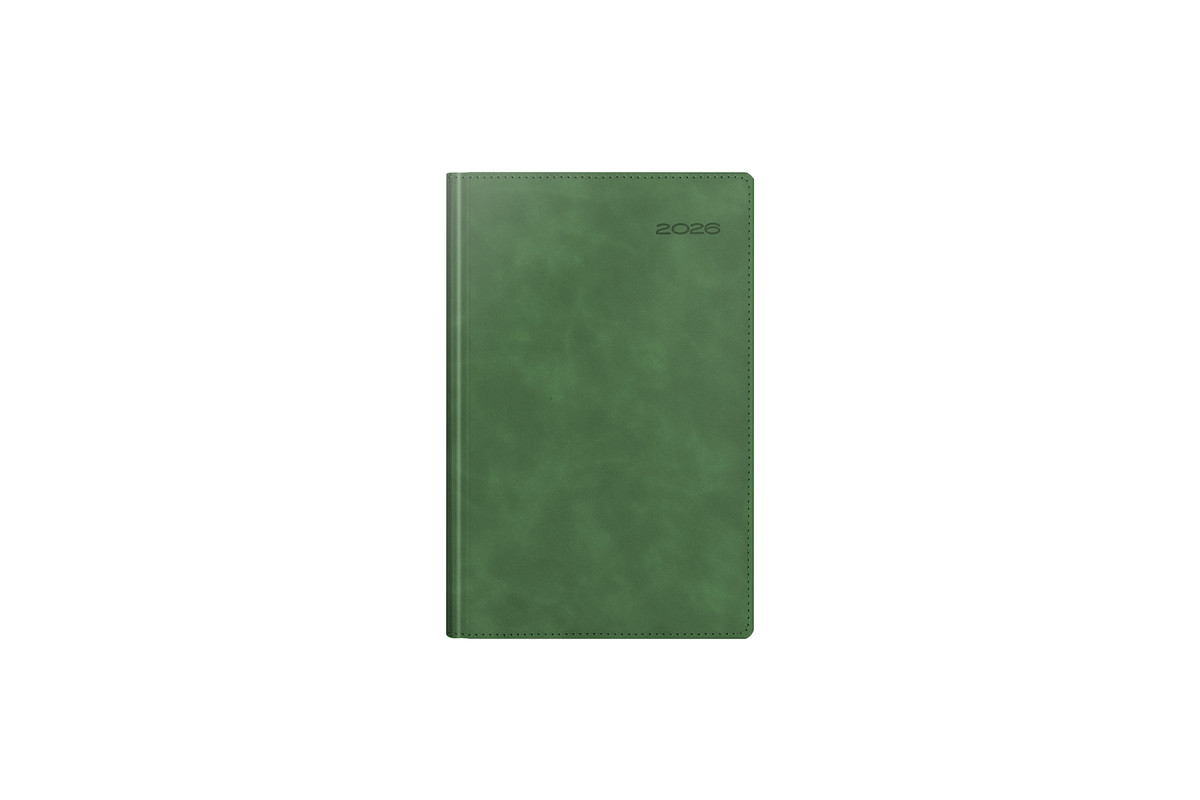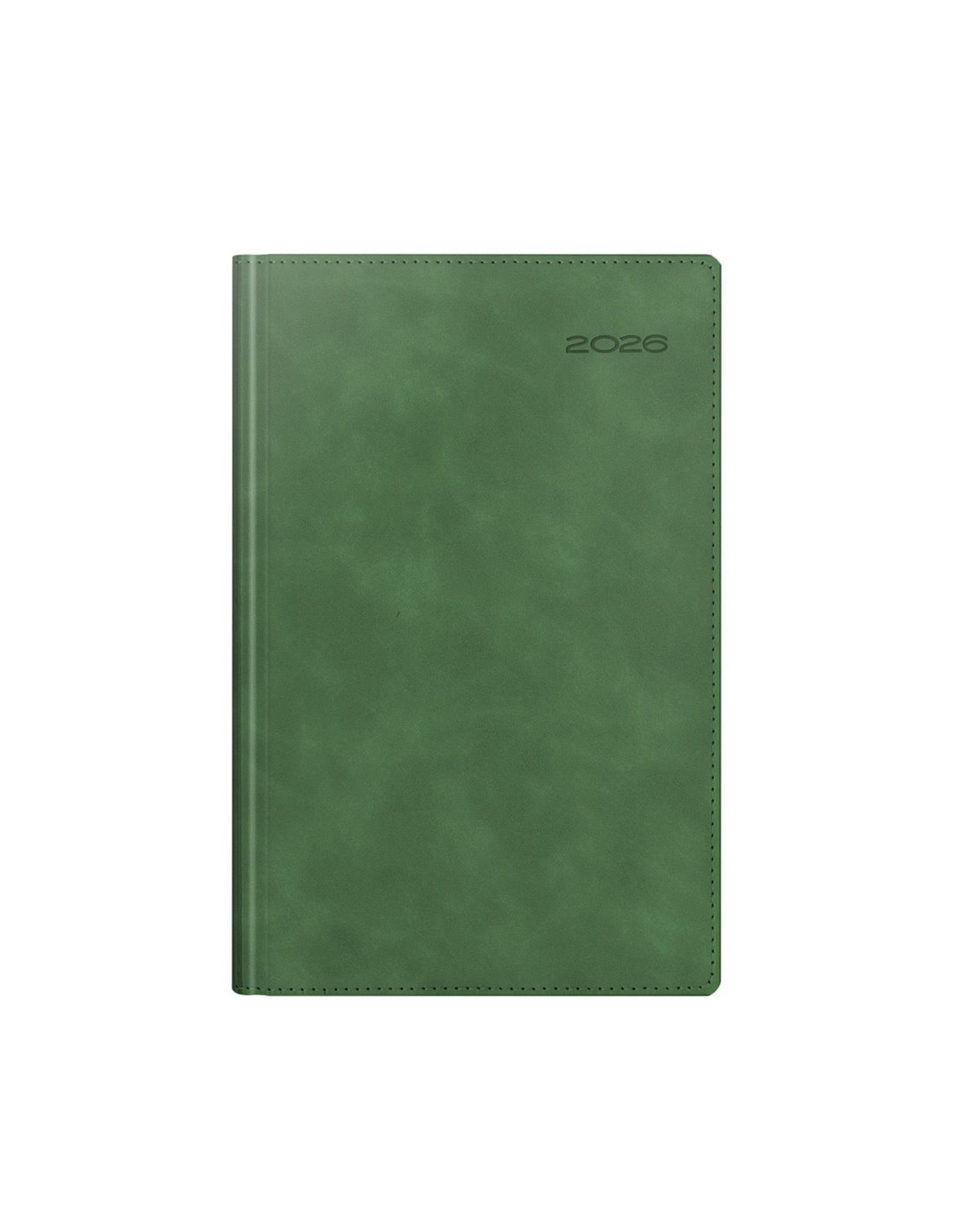 Designul său premium impresionează prin marginea cu folio argintiu, coperta flexibilă din piele ecologică cu textură moale și catifelată, precum și prin hârtia de calitate superioară, cu un gramaj de 80 g/mp. Nuanța de verde clasic adaugă o notă de prospețime și rafinament, transformând această agendă într-un accesoriu ideal pentru birou, întâlniri sau utilizare personală.