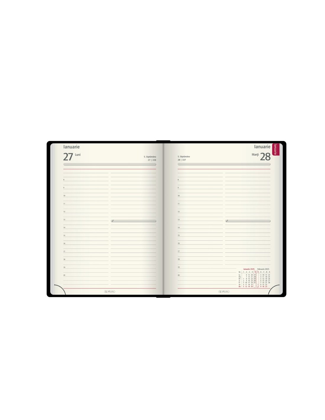 Eleganța detaliilor transformă planificarea într-un moment de inspirație. Cu agenda Herlitz Premium Deluxe Chiavenna 2026 în nuanța negru cu margine aurie, fiecare zi devine o expresie a profesionalismului și rafinamentului.