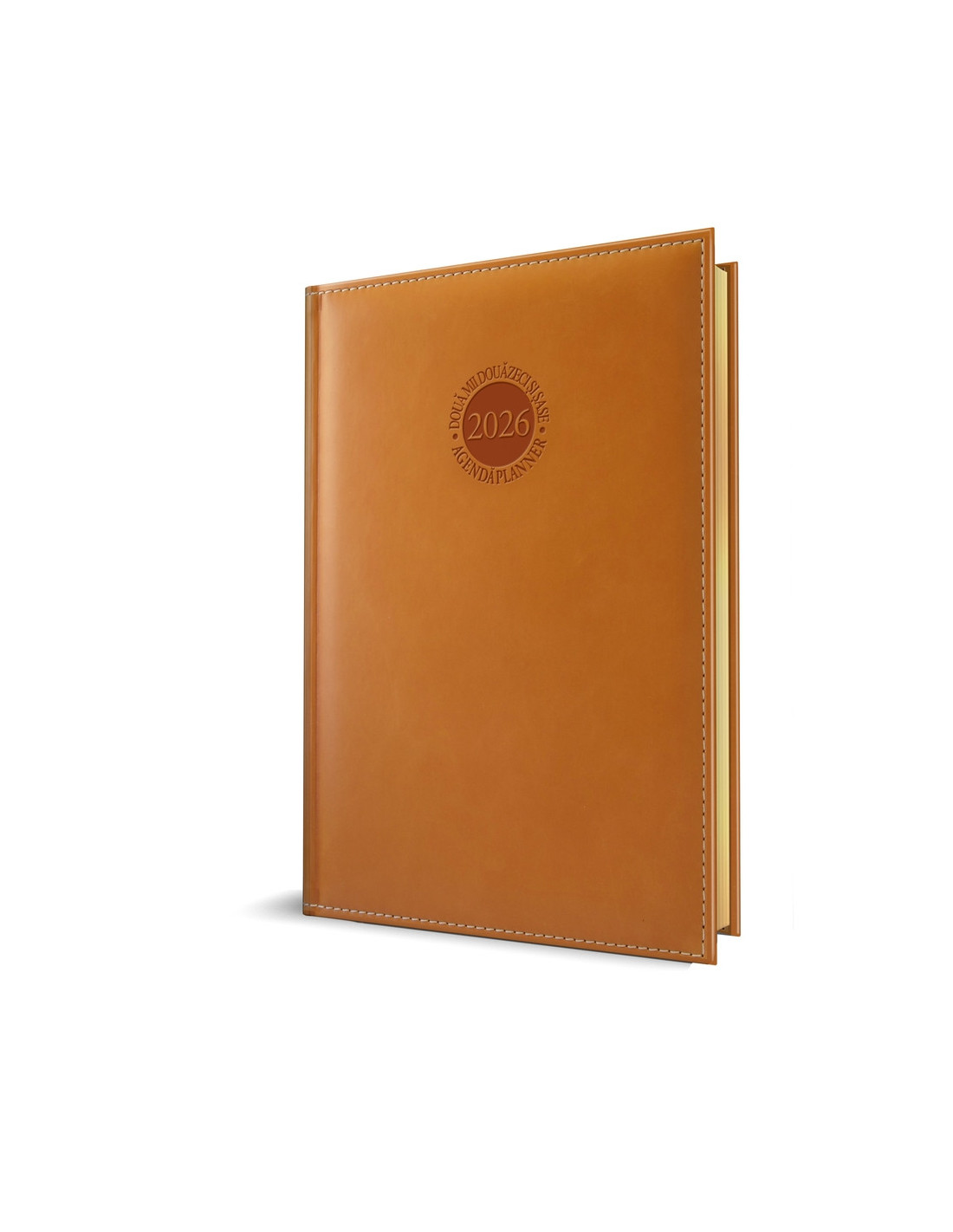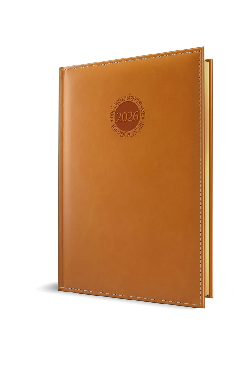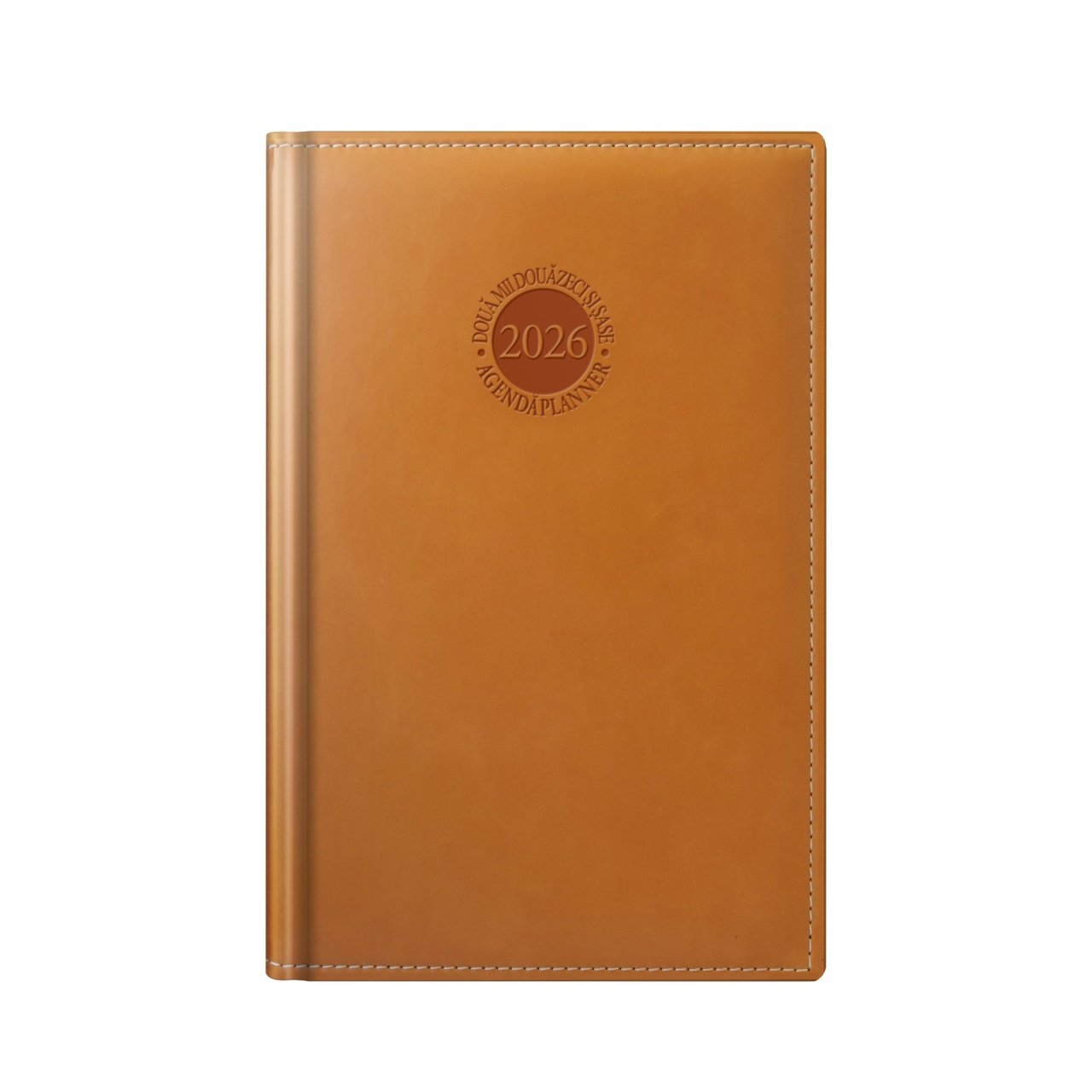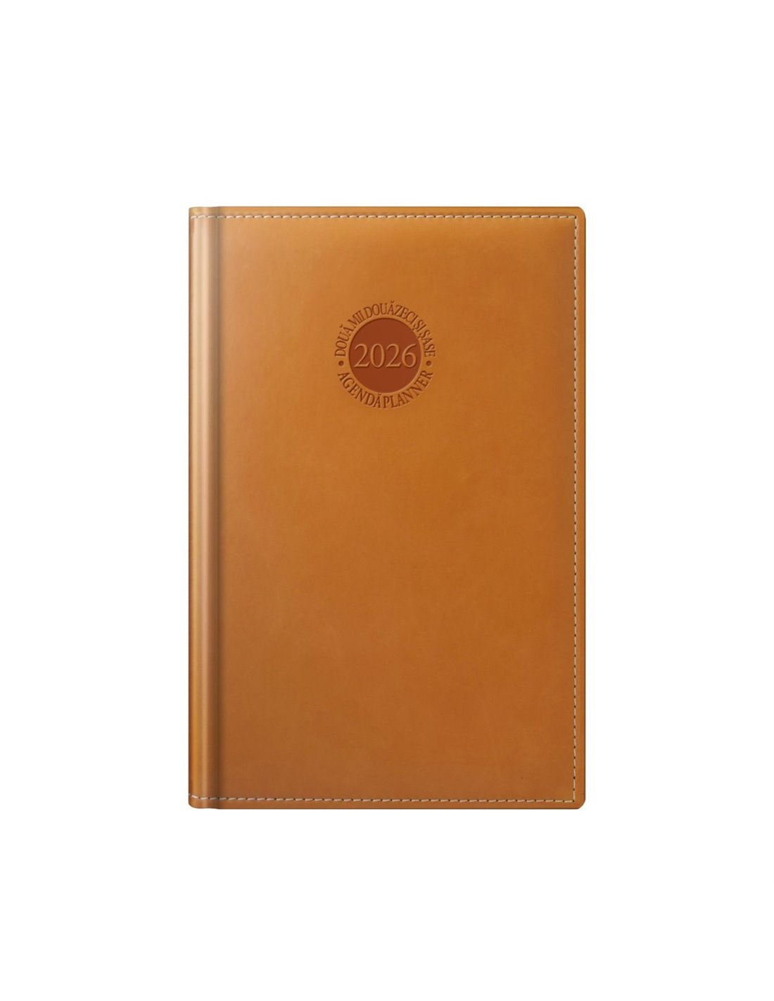 Designul premium al acestei agende impresionează prin marginea cu folio auriu, hârtia albă de calitate superioară și coperta buretată din piele ecologică cu textură fină, plăcută la atingere. Nuanța caldă de maro clasic transmite echilibru, seriozitate și eleganță atemporală, potrivindu-se perfect în orice context profesional.