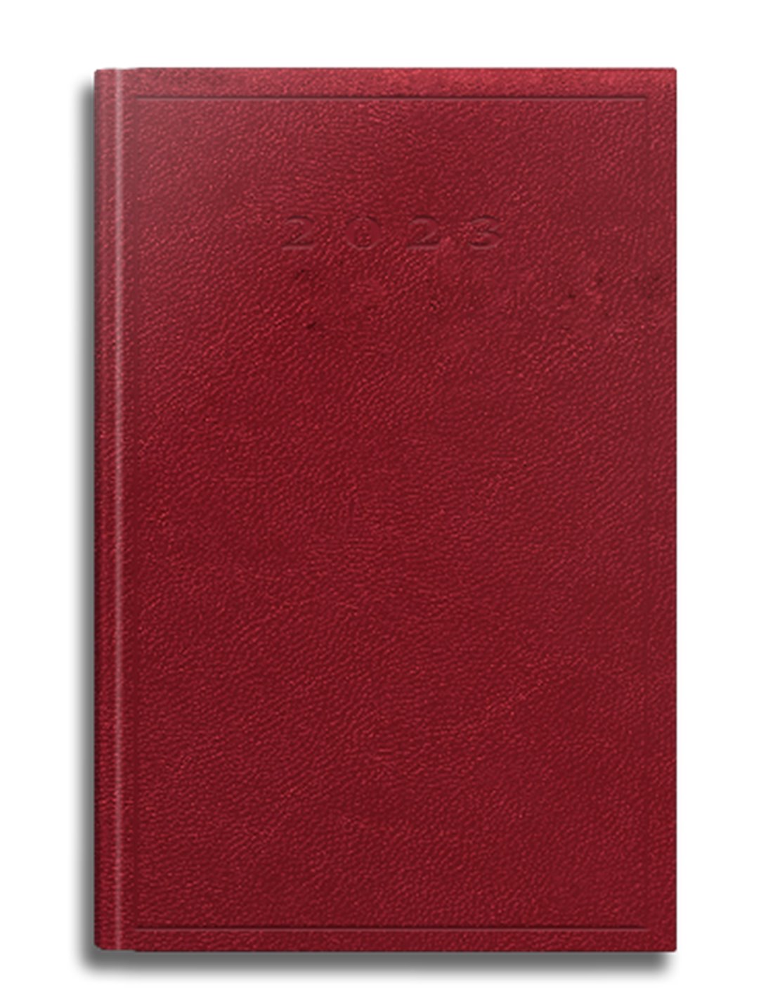 Agenda datata A5, 352 de pagini, coperta buretata, culoare rosie, inscriptie 2023