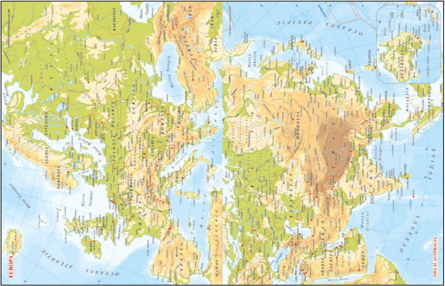 Imprimare: 2 culori (portocaliu, gri), atlas 8 pagini policromie, forzat gri.