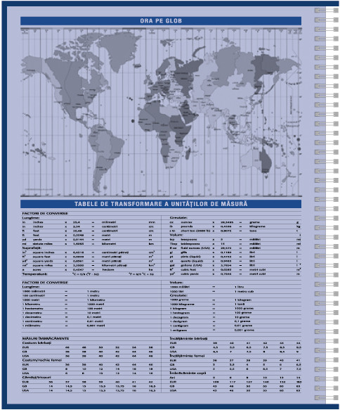 Interiorul conține 208 pagini din hârtie offset albă, de 70 g/mp, alături de 16 pagini de planning dedicate programării săptămânale și obiectivelor personale. Hărțile și informațiile utile sunt tipărite pe forzatul cromatic, asortat perfect cu designul copertelor, oferind o notă profesională și rafinată.
