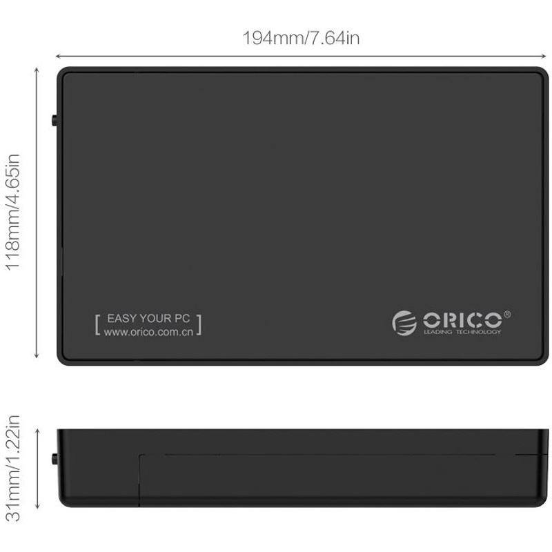 Orico 3588C3 USB 3.0 Type-C Tool Free 3.5” SATA External Enclosure Black, compatibil cu HDD/SSD 3.5” SATA, capacitate maxima 8TB, conectivitate USB 3.0 Type-C, constructie din plastic si otel galvanizat, include cablu USB 3.0 Type-A - Type-C, plug and play, compatibilitate: Windows/Mac/Linux, dimensiuni: 194 x 118 x 31mm