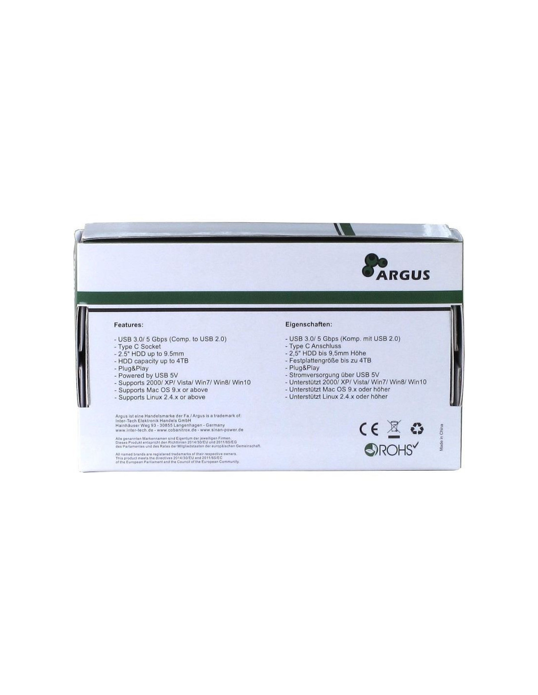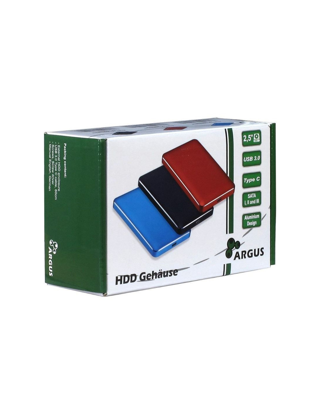 Inter-Tech Veloce GD-25609 USB 3.0 Blue, compatibil cu HDD 2.5” SATA (grosime maxima 9.5mm), capacitate maxima: 4TB, conector: USB Type-C, constructie din aluminiu, include cablu USB 3.0 Type-C, plug and play, dimensiuni (h/w/d): 11 x 78 x 130mm