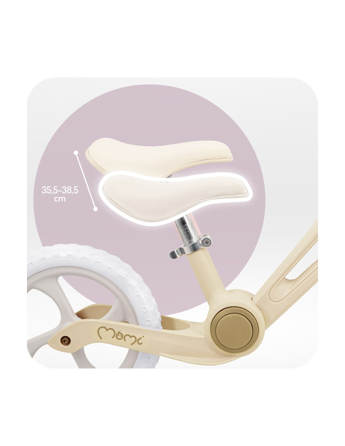 MoMi NORU este o bicicleta de echilibru unica, ce se remarca prin optiunea inovatoare de pliere a cadrului cu o simpla apasare de buton. Aceasta o face mult mai portabila!