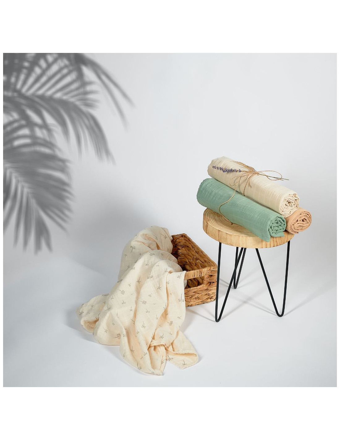 Multifunctionala. Aceasta poate fi folosita ca: Prosop moale pentru dupa baie, Baveta de urgenta sau prosop pentru sters fata, Protectie in timpul alaptarii – ofera confort si discretie, Scutec textil de rezerva sau cearsaf de schimb, Paturica de infasat, de confort sau pentru leganat, Protectie impotriva vantului/soarelui in carucior, Esarfa pentru mama – materialul natural respira si e placut la atingere.