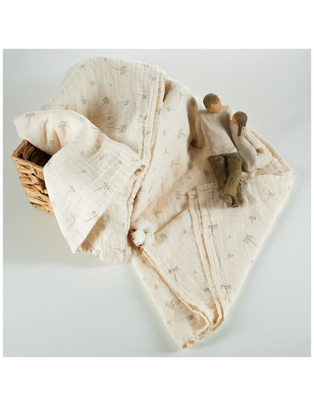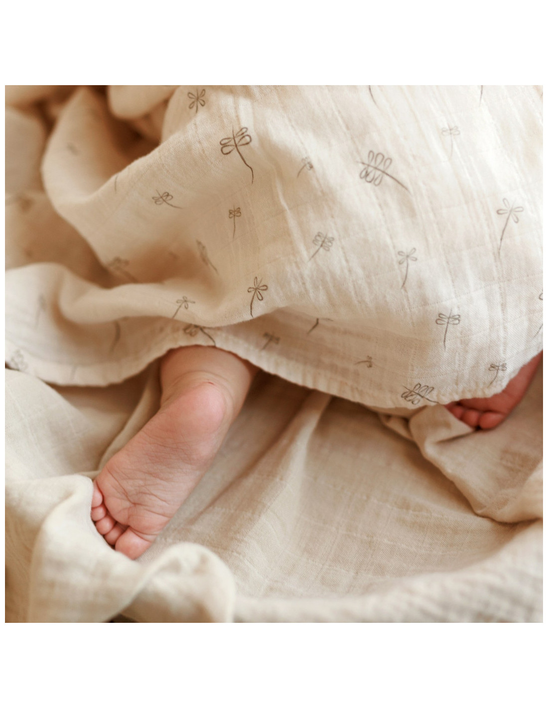 Realizata din bumbac 100% organic, certificat GOTS, muselina ONINO este delicata cu pielea bebelusului si extrem de versatila – perfecta ca paturica, prosop, protectie pentru alaptare sau invelis lejer. Designul sau cu libelule, desenate in linii simple, aduce un aer contemporan si atemporal. Inspirate din natura, libelulele simbolizeaza libertatea, transformarea si usurinta – exact ceea ce iti doresti in momentele alaturi de cel mic.