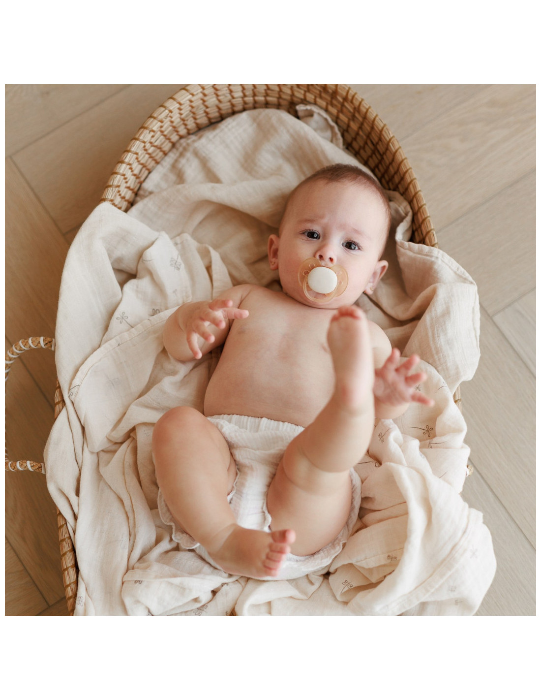 Muselina ONINO este realizata din bumbac 100% organic, moale ca o imbratisare si perfect sigura pentru pielea delicata a nou-nascutului. Fara iritatii, fara materiale sintetice — doar pura delicatete..