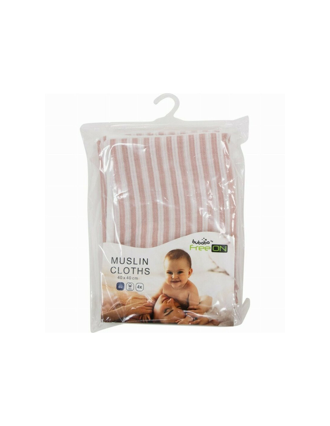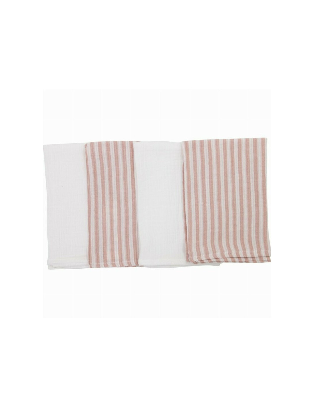 Set 4 lavete, Bubaba, Din muselina, Dimensiune 40x40 cm, Pentru spalarea si ingrijirea fetei si a corpului bebelusului dupa masa sau baita, Pink Stripes