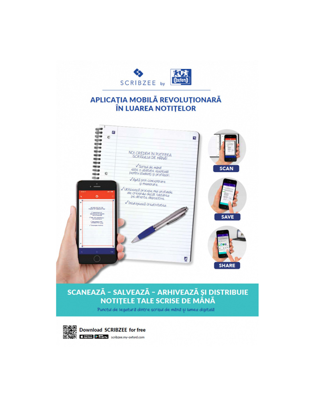 Compatibil cu aplicatia gratuita pentru smartphone Scribzee®, pentru a scana, salva si organiza notitele.