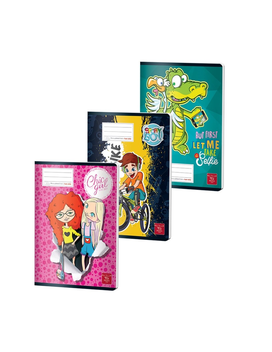 Prevăzut cu 24 de file, caietul conține liniatură tip geometrie, ideală pentru calcule, grafice și exerciții specifice. Coperta policromie, lucioasă, este imprimată cu modele variate și atractive, oferind un aspect plăcut și protecție suplimentară filelor interioare.