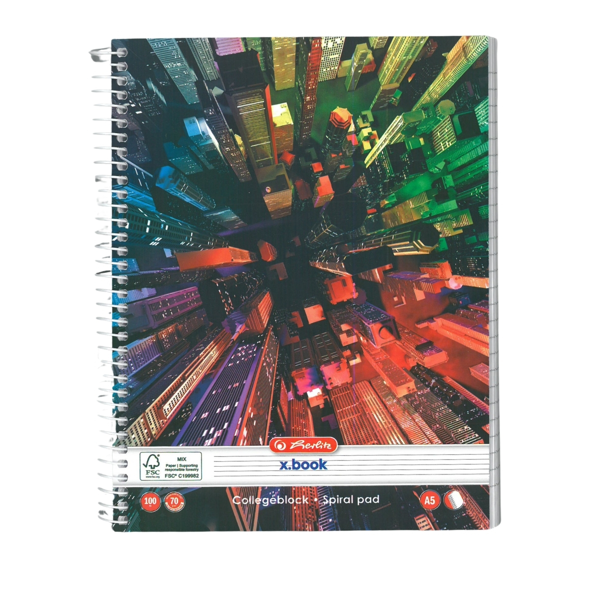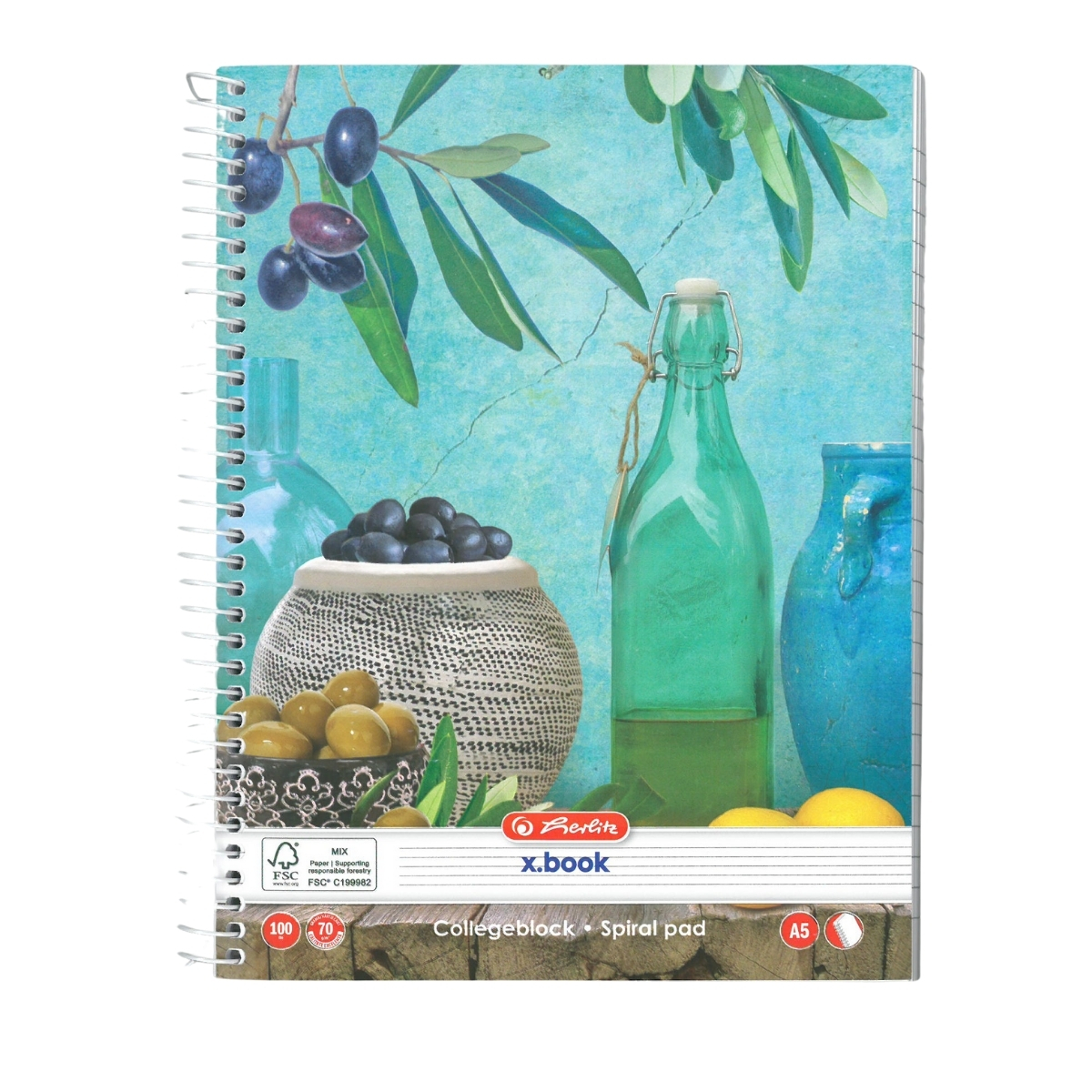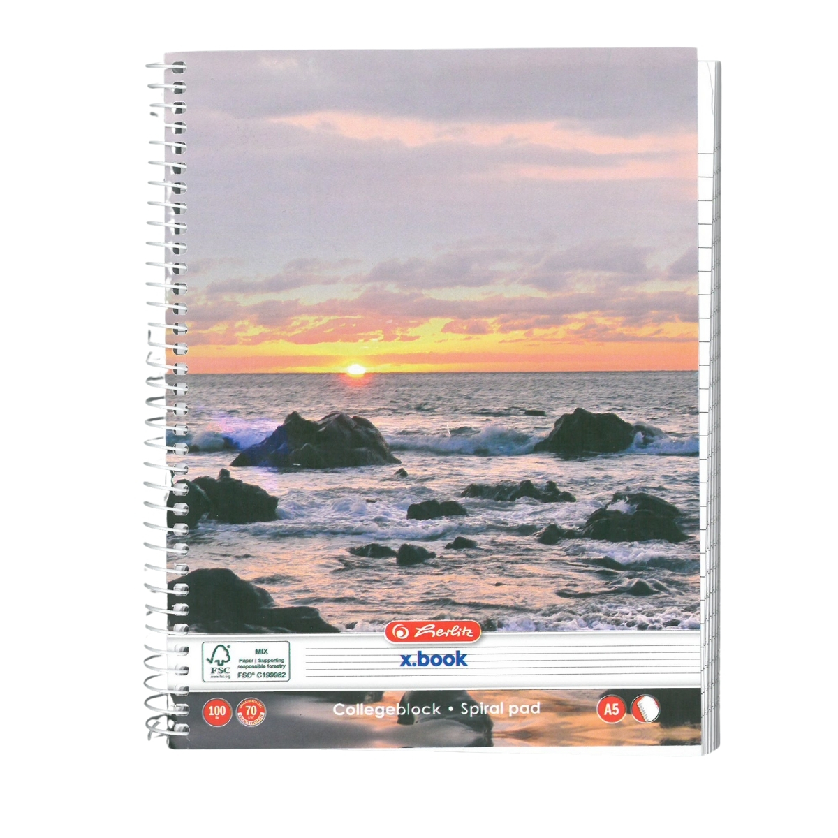 • Caiet A5 cu spirală, 100 file, hârtie 70 g/mp
