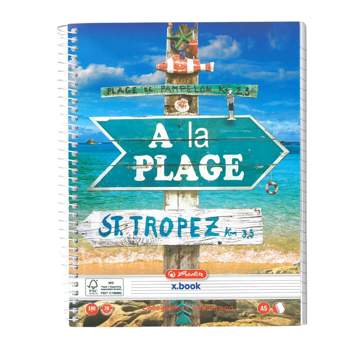 Caiet A5 cu spirala Herlitz, 100 file, 70g/mp, dictando, Motiv enjoy life