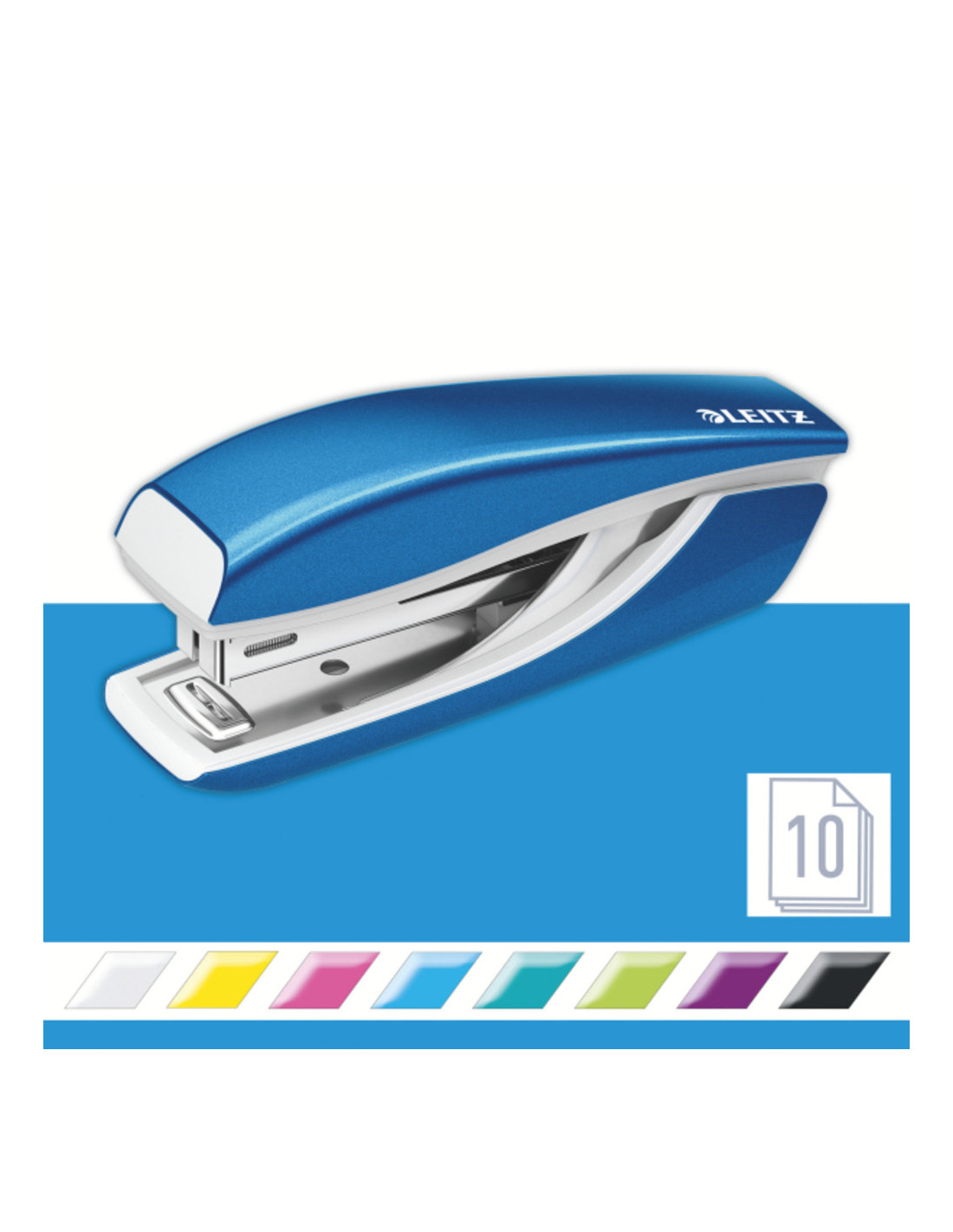 Capsator metalic LEITZ WOW 5528 MINI NeXXt Series, 10 coli, 1000 capse P2 incluse, albastru