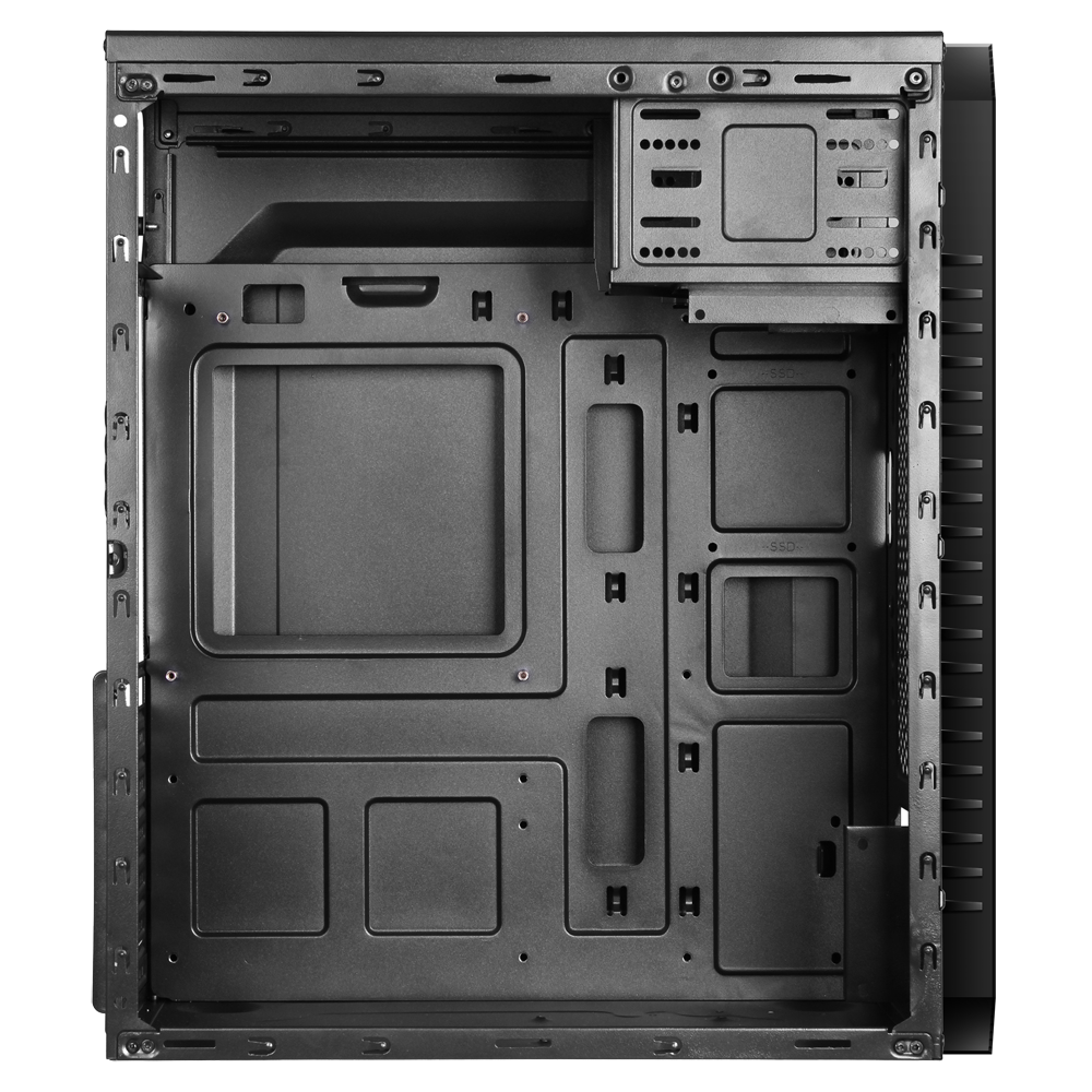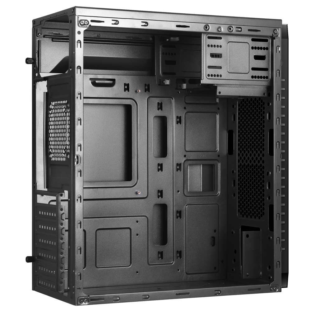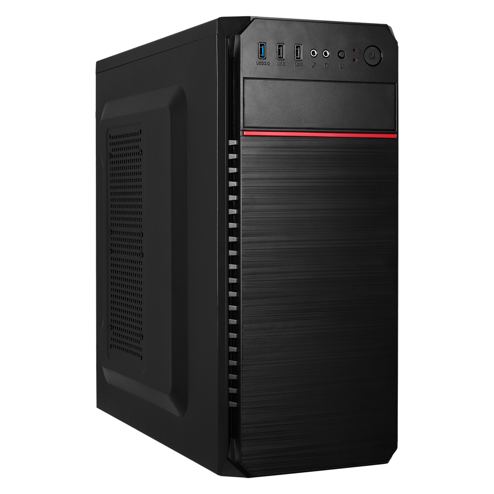 RPC Carcasa AB50UDB Black 500W Type Middle Tower ATX Chassis SPCC 0.4 mm, black Mainboards mATX / ATX PSU 500 W (positioned up) 5.25" Drive Bay 1 Internal 3.5" Drive Bay 1 Internal 2.5" Drive Bay 2 Internal Expansion Slots 7 Maximum CPU length 140 mm Maximum length for video card 270 mm Front I / O Ports USB 3.0 x 1 USB 2.0 x 2 Microphone & HD Audio Cooling System Front: 120 mm fan x 1 (optional) Top: 120 mm fan x 1 (optional) Side: 120 mm fan x 1 (optional) Rear: 8 mm fan x 1 (optional) Dimension (W x H x D) 365 x 175 x 405 mm Color Full black with red