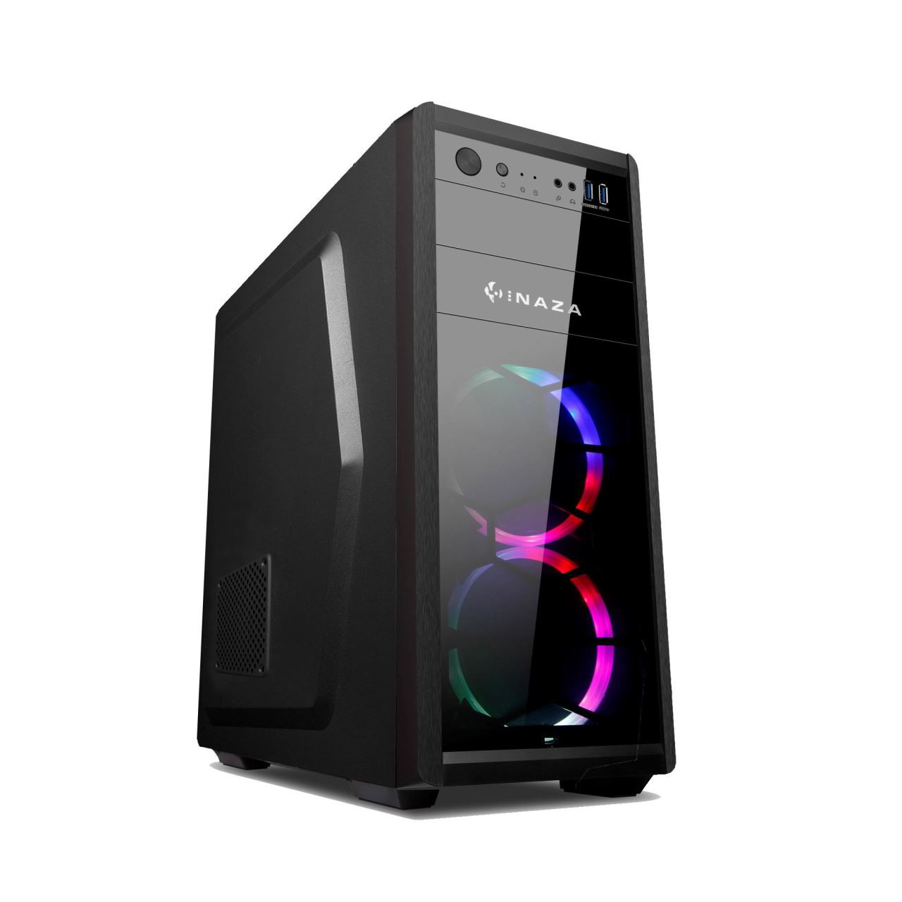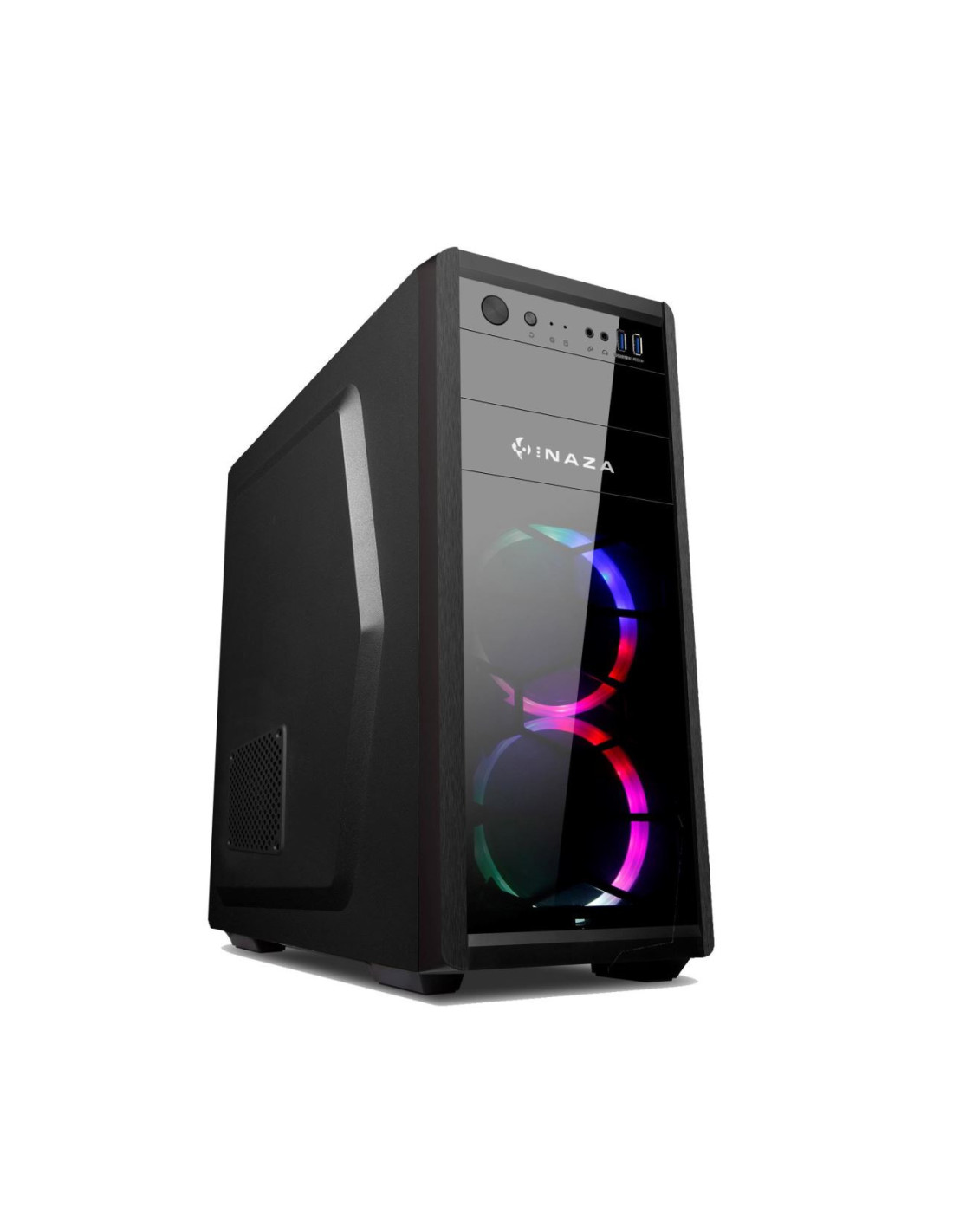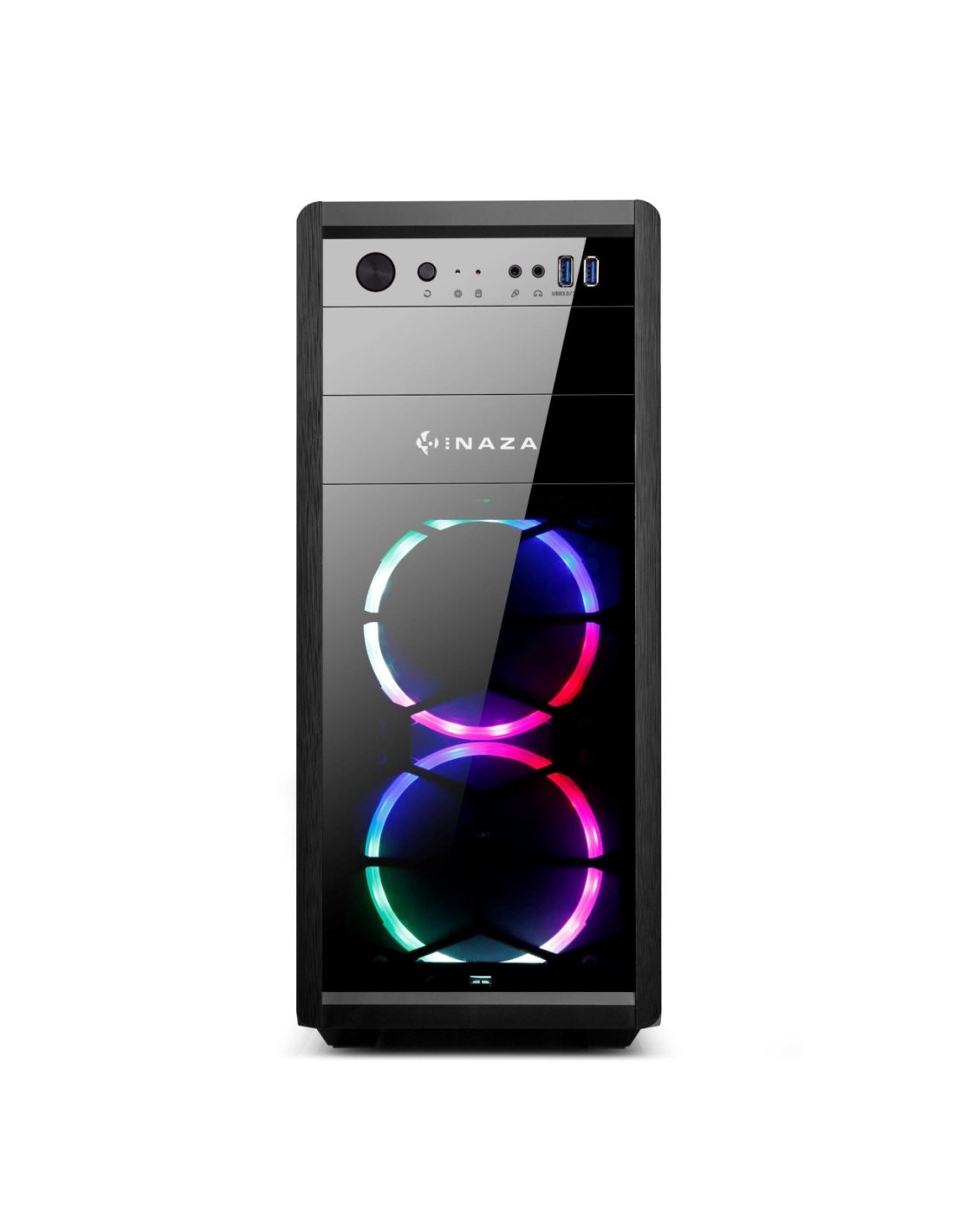 Carcasa Inaza Katana neagra, SPCC Steel ATX Mid Tower, fara sursa (tip ATX, montata jos), interior vopsit negru, 1x 5.2” (intern), 2x2.5” (intern), 2x 3.5” (intern), fata – 2x 120mm LED fRGB fans (inclus), spate – 1x 120mm LED fRGB fan (inclus), tavan – 2x 120mm fans (optional), 2x USB 3.0, HD Audio, ATX / microATX / Mini-ITX, sloturi expansiune: x7, inaltime maxima cooler procesor: 160mm, lungime maxima placa video: 345mm, suport radiatoare water cooling: tavan – 1x 240mm, dimensiuni (HxWxD): 415x192x418mm, greutate: 4kg
