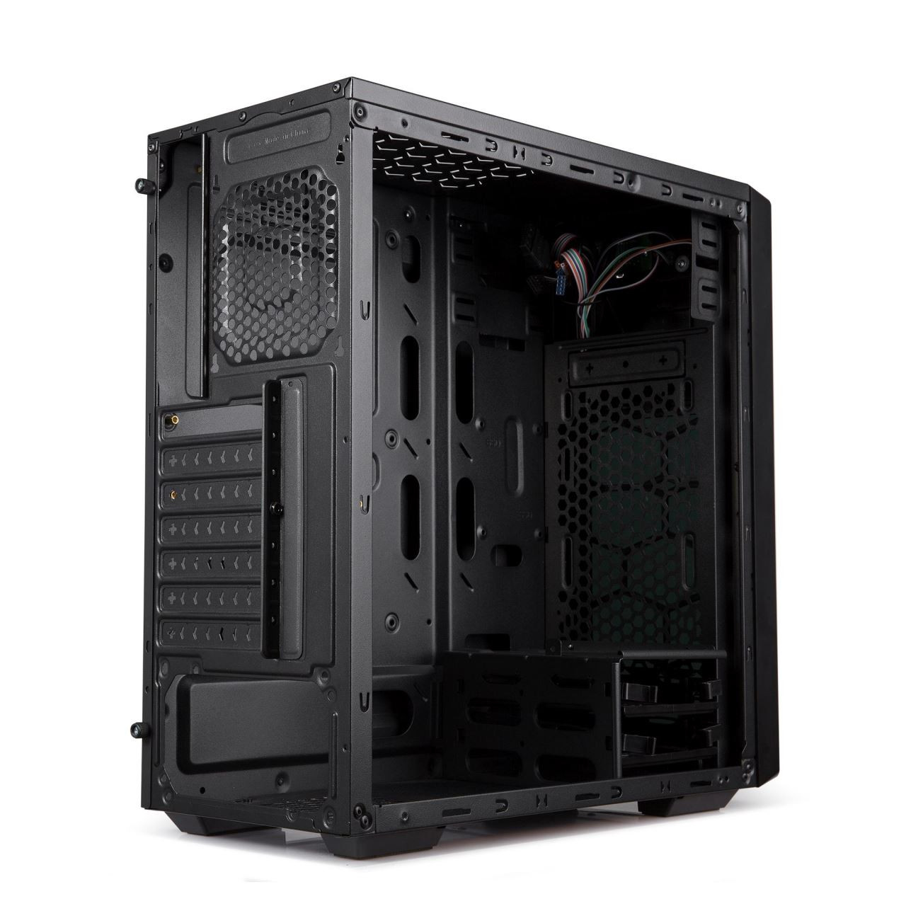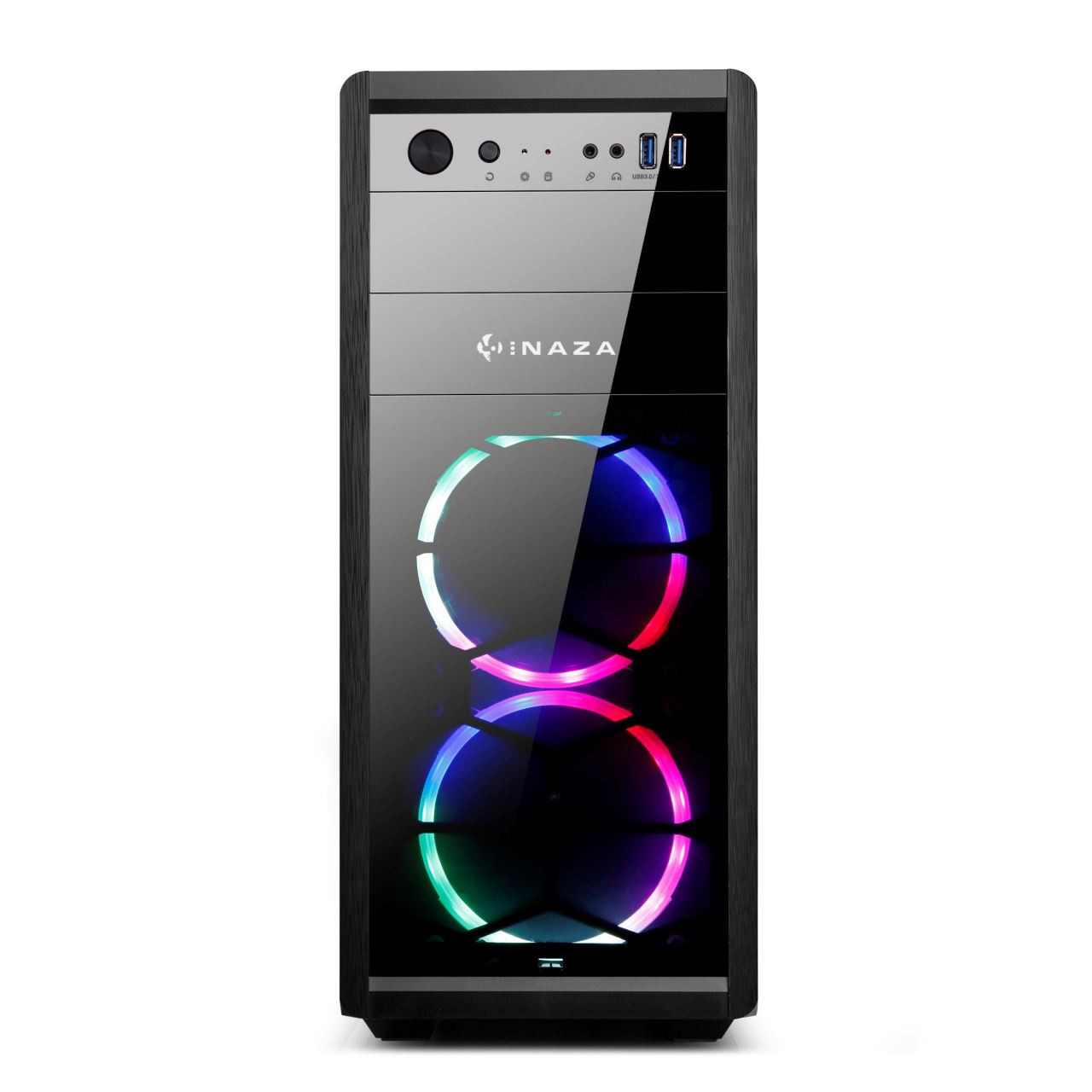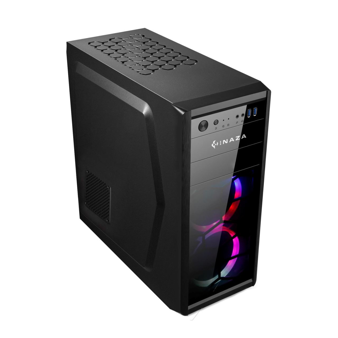 Carcasa Inaza Katana neagra, SPCC Steel ATX Mid Tower, fara sursa (tip ATX, montata jos), interior vopsit negru, 1x 5.2” (intern), 2x2.5” (intern), 2x 3.5” (intern), fata – 2x 120mm LED fRGB fans (inclus), spate – 1x 120mm LED fRGB fan (inclus), tavan – 2x 120mm fans (optional), 2x USB 3.0, HD Audio, ATX / microATX / Mini-ITX, sloturi expansiune: x7, inaltime maxima cooler procesor: 160mm, lungime maxima placa video: 345mm, suport radiatoare water cooling: tavan – 1x 240mm, dimensiuni (HxWxD): 415x192x418mm, greutate: 4kg