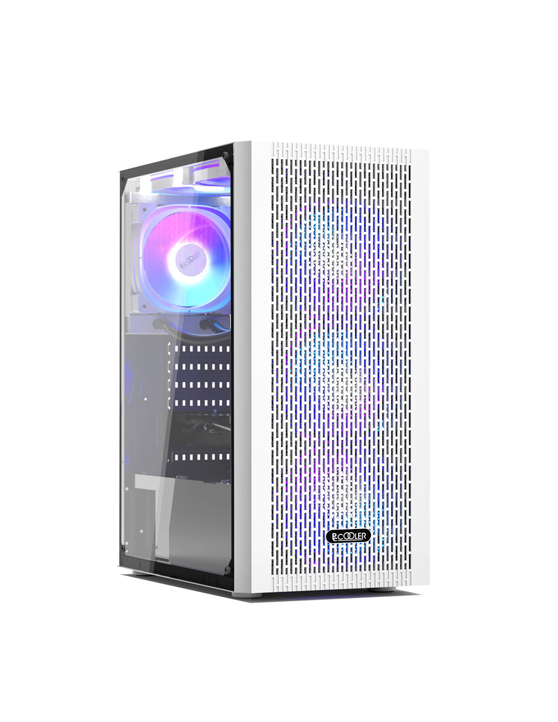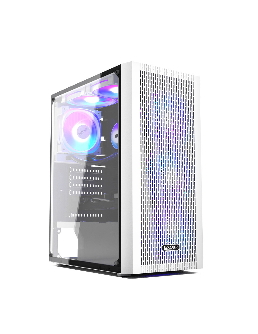 CARCASA PCCOOLER, Middle Tower, ATX, fara sursa, sticla securizata, 3 ventilatoare incluse, iluminare ARGB, alb, USB 3.2 gen 1 x
