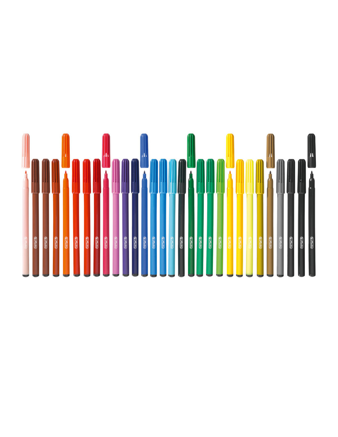 Carioci, sectiune circulara, corp din material plastic, cerneala pe baza de coloranti naturali, Non Toxic, varf 2 mm, set 30 culori, herlitz