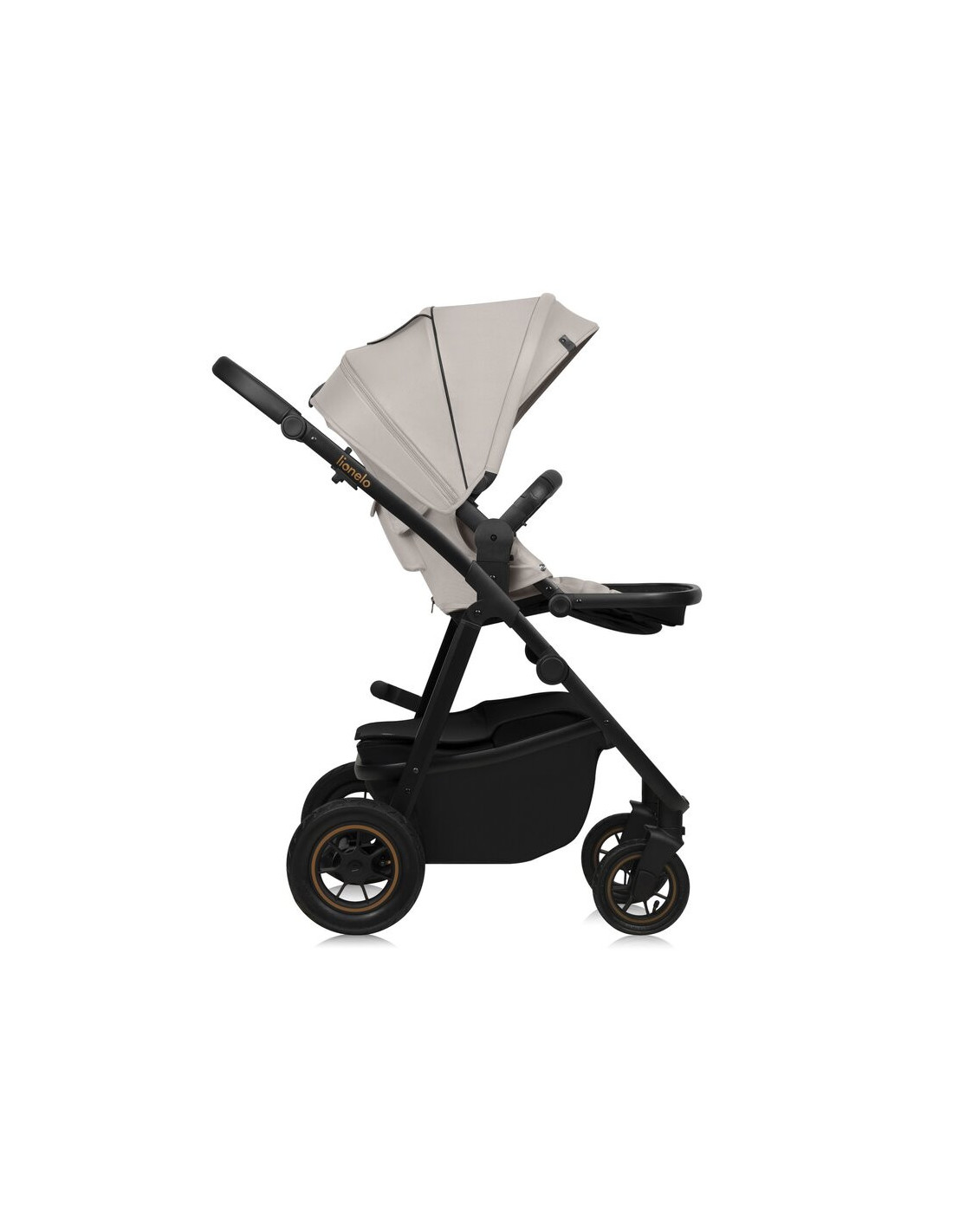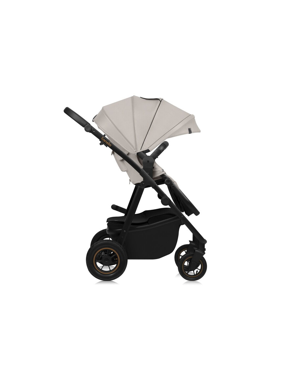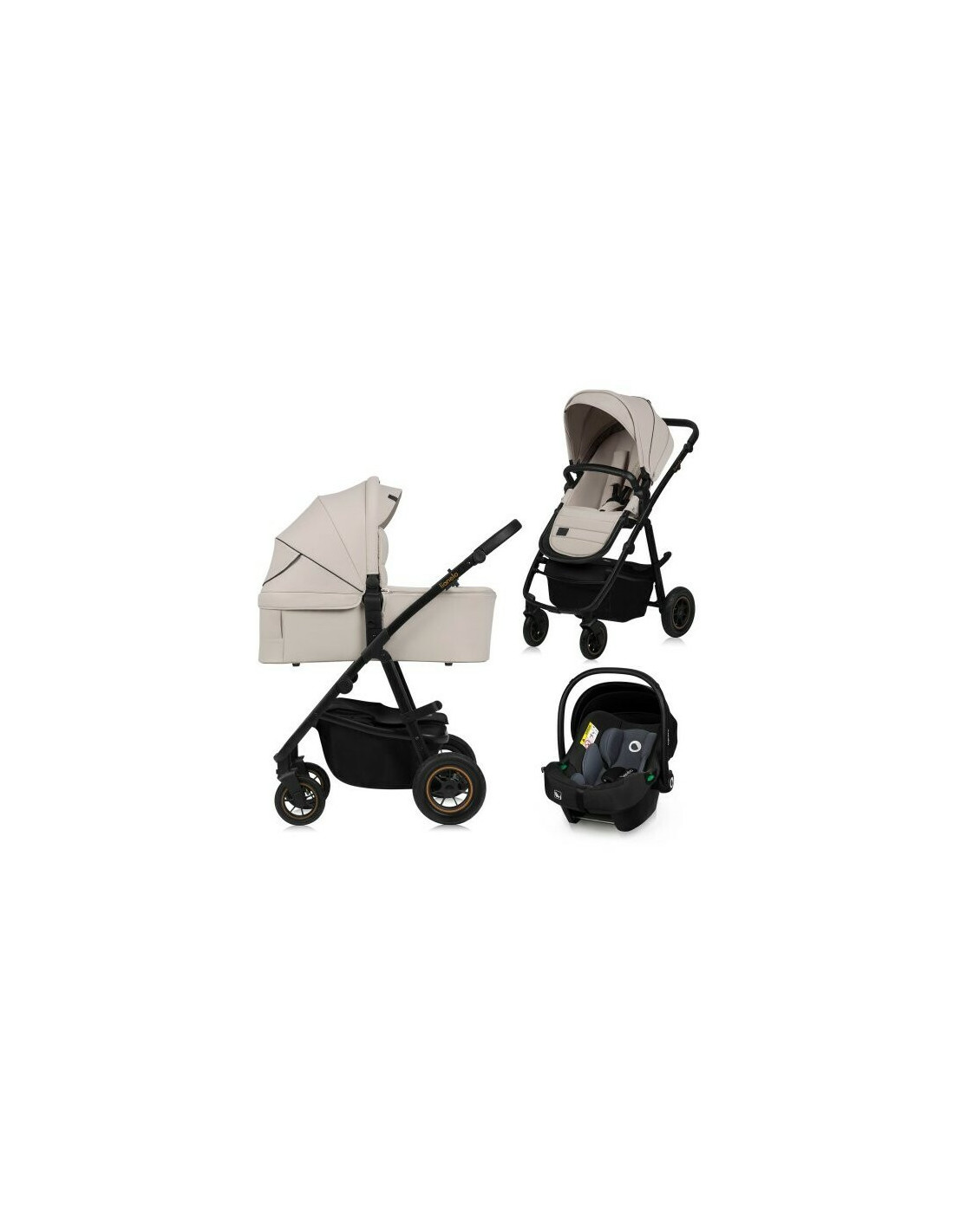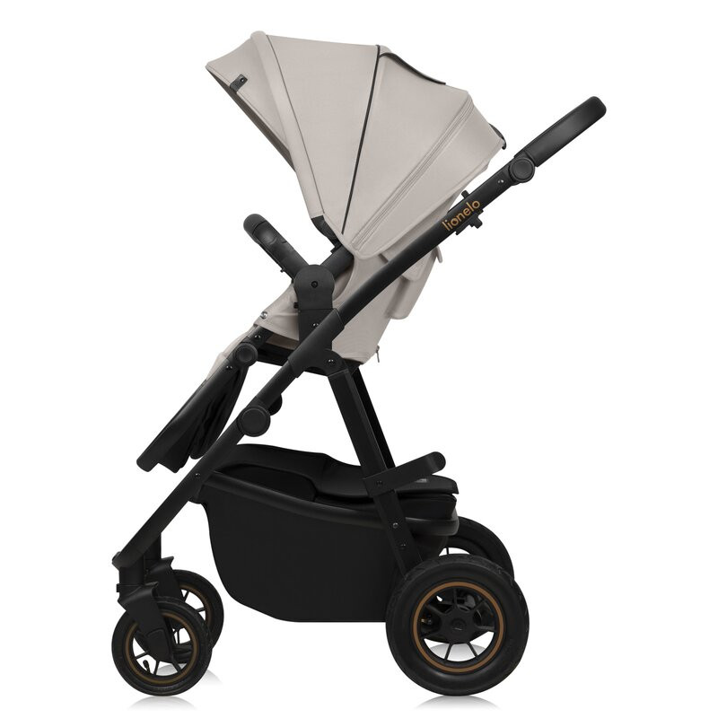 Carucior 3 in 1, Lionelo, Amber Plus, Cadru aluminiu, Cu landou intarit si salteluta moale, Cu scoica auto testata ADAC, Reversibil, Maner ajustabil, Cu accesorii, Cu ventilatie panoramica 3D, Pana la 22 kg, EN1888-1, EN1888-2, EN1466, ECE R129, Bej