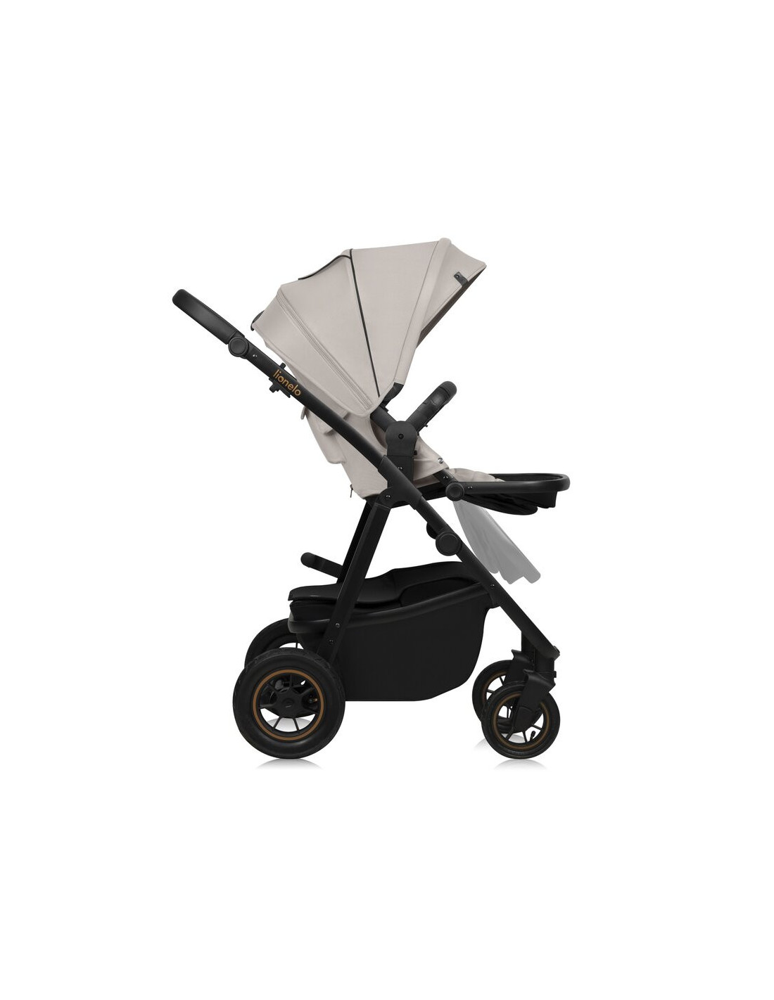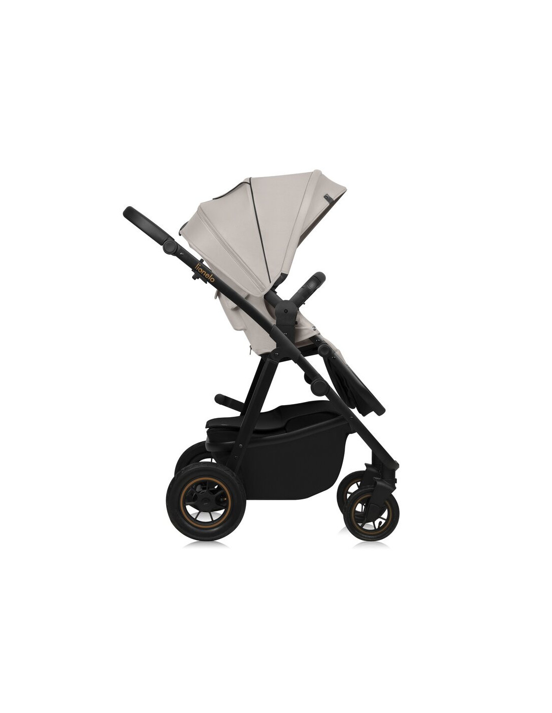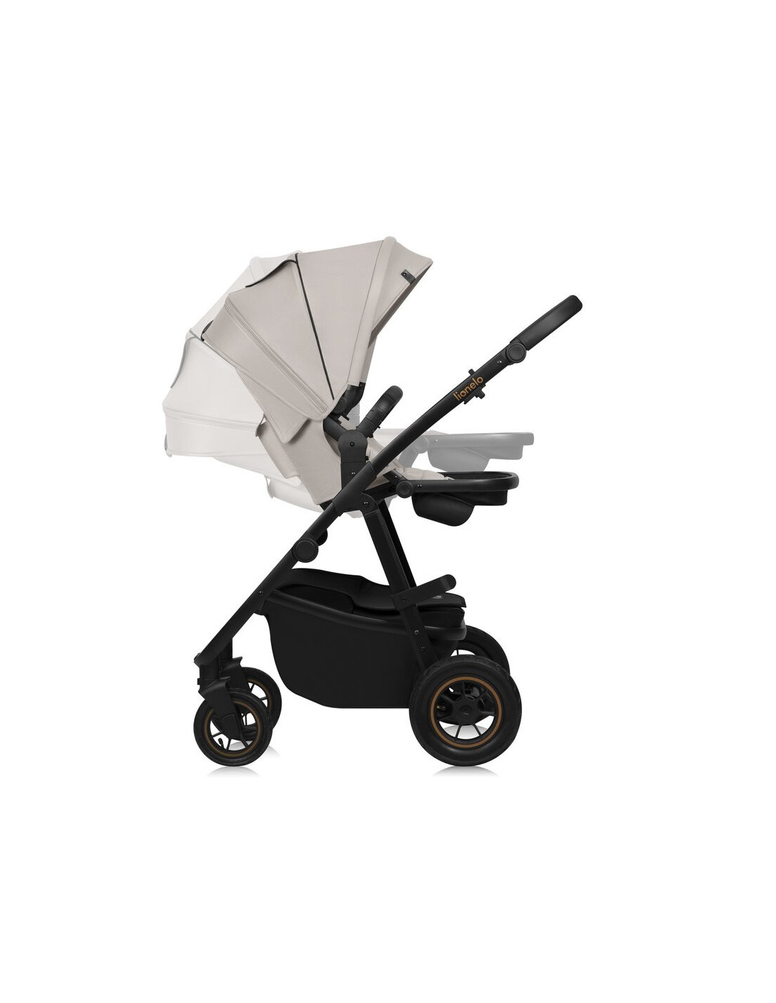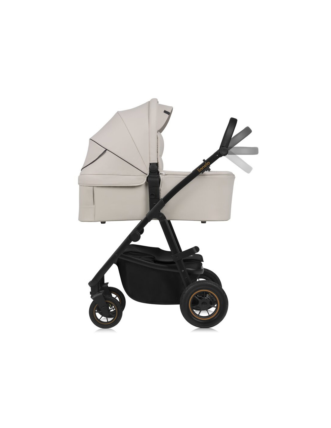 Carucior 3 in 1, Lionelo, Amber Plus, Cadru aluminiu, Cu landou intarit si salteluta moale, Cu scoica auto testata ADAC, Reversibil, Maner ajustabil, Cu accesorii, Cu ventilatie panoramica 3D, Pana la 22 kg, EN1888-1, EN1888-2, EN1466, ECE R129, Bej