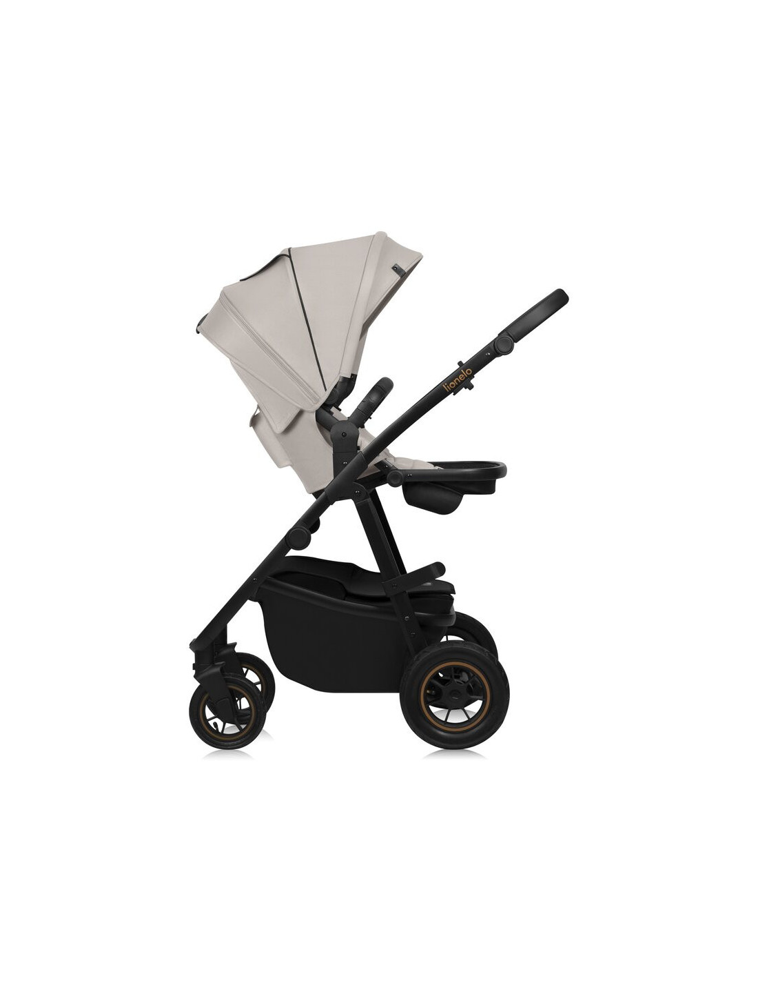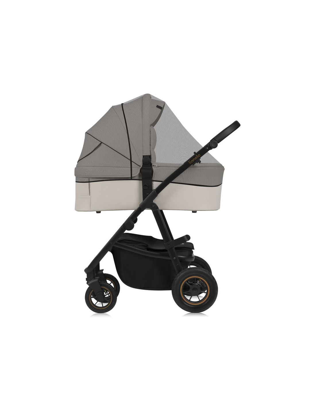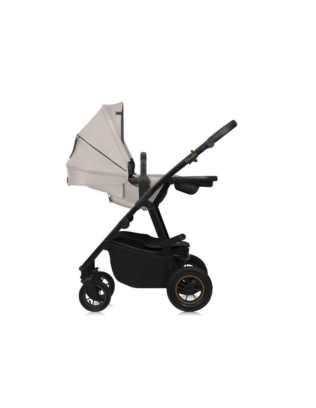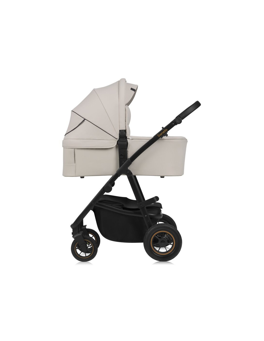 Carucior 3 in 1, Lionelo, Amber Plus, Cadru aluminiu, Cu landou intarit si salteluta moale, Cu scoica auto testata ADAC, Reversibil, Maner ajustabil, Cu accesorii, Cu ventilatie panoramica 3D, Pana la 22 kg, EN1888-1, EN1888-2, EN1466, ECE R129, Bej