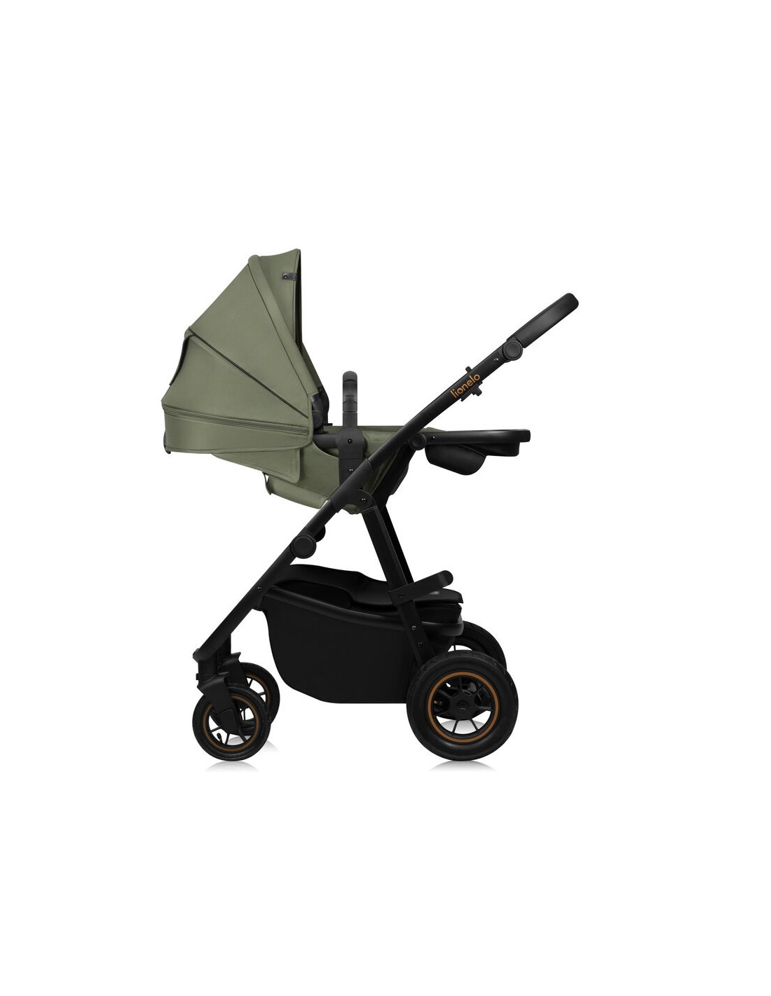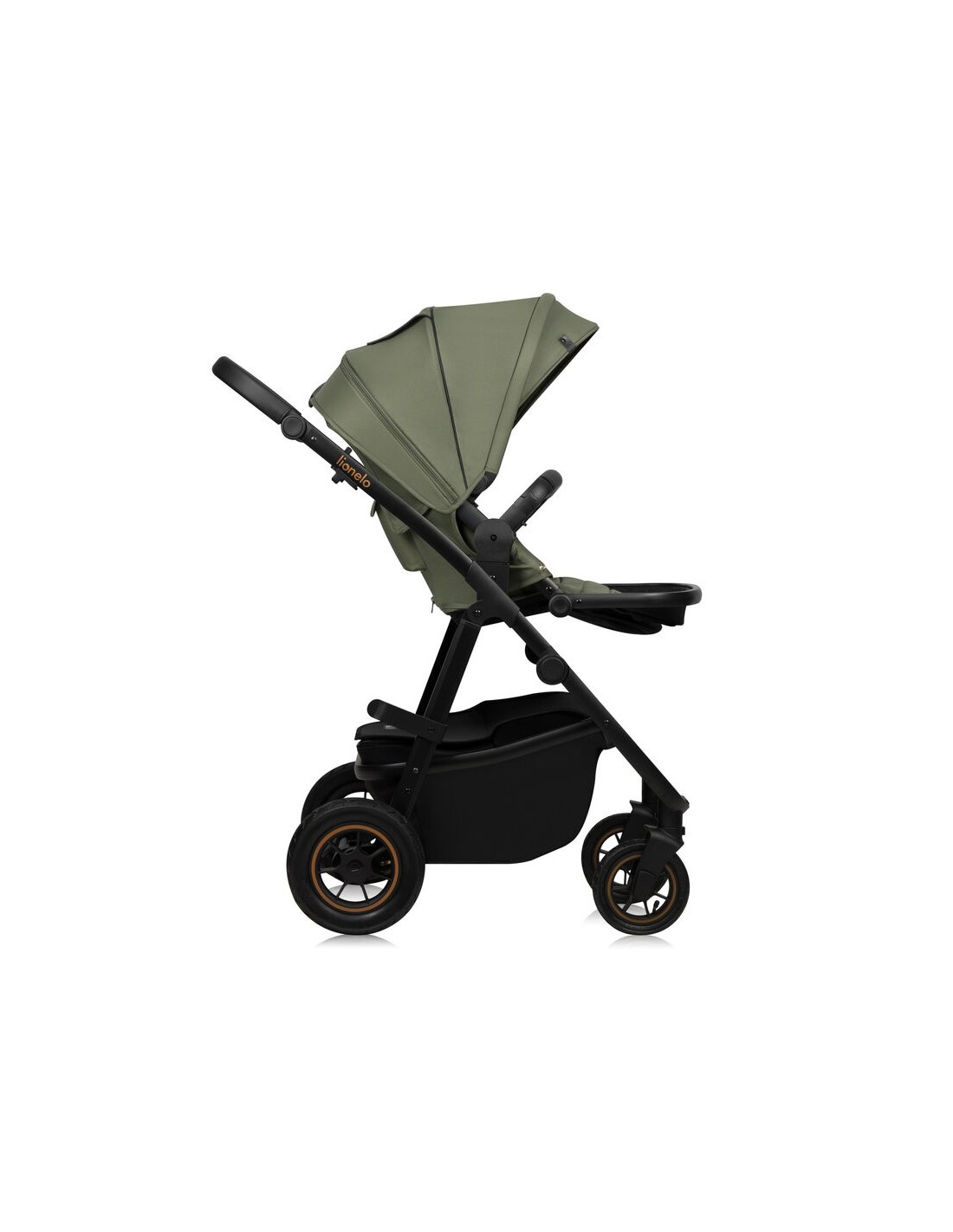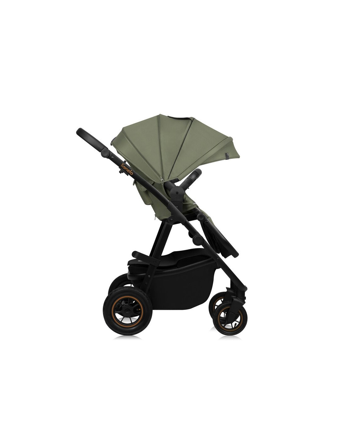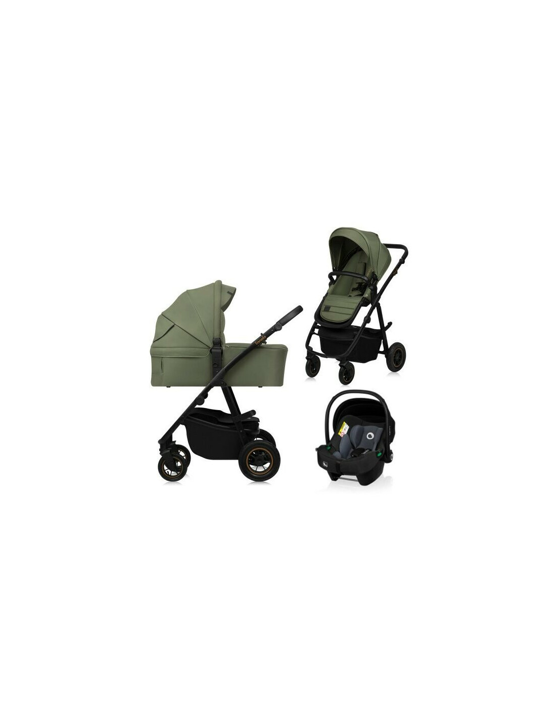 Carucior 3 in 1, Lionelo, Amber Plus, Cadru aluminiu, Cu landou intarit si salteluta moale, Cu scoica auto testata ADAC, Reversibil, Maner ajustabil, Cu accesorii, Cu ventilatie panoramica 3D, Pana la 22 kg, EN1888-1, EN1888-2, EN1466, ECE R129, Verde