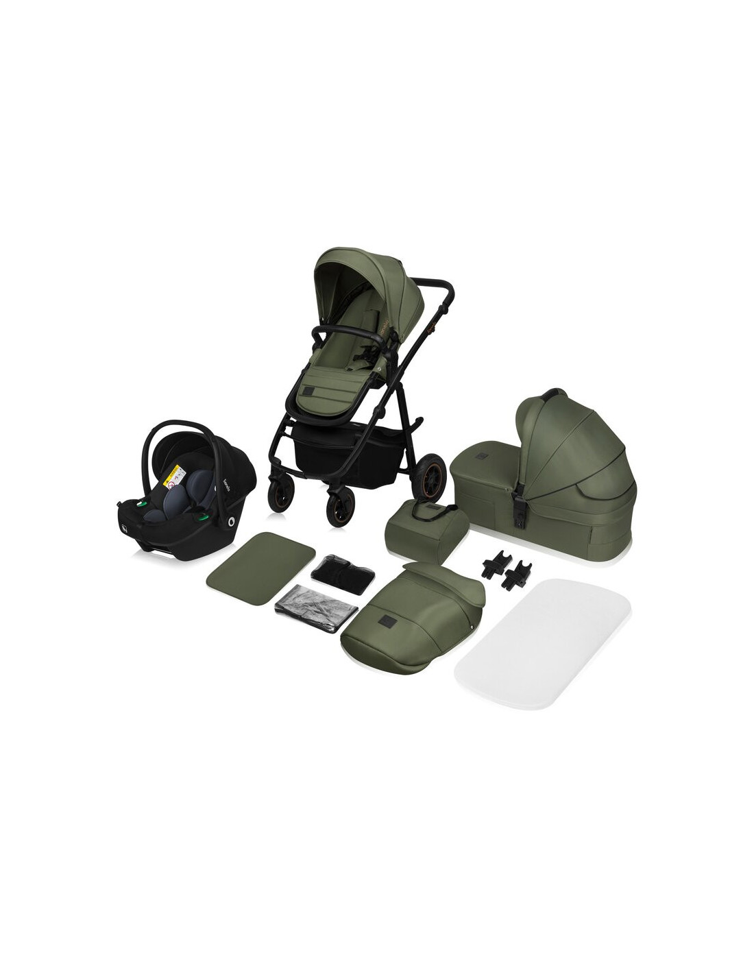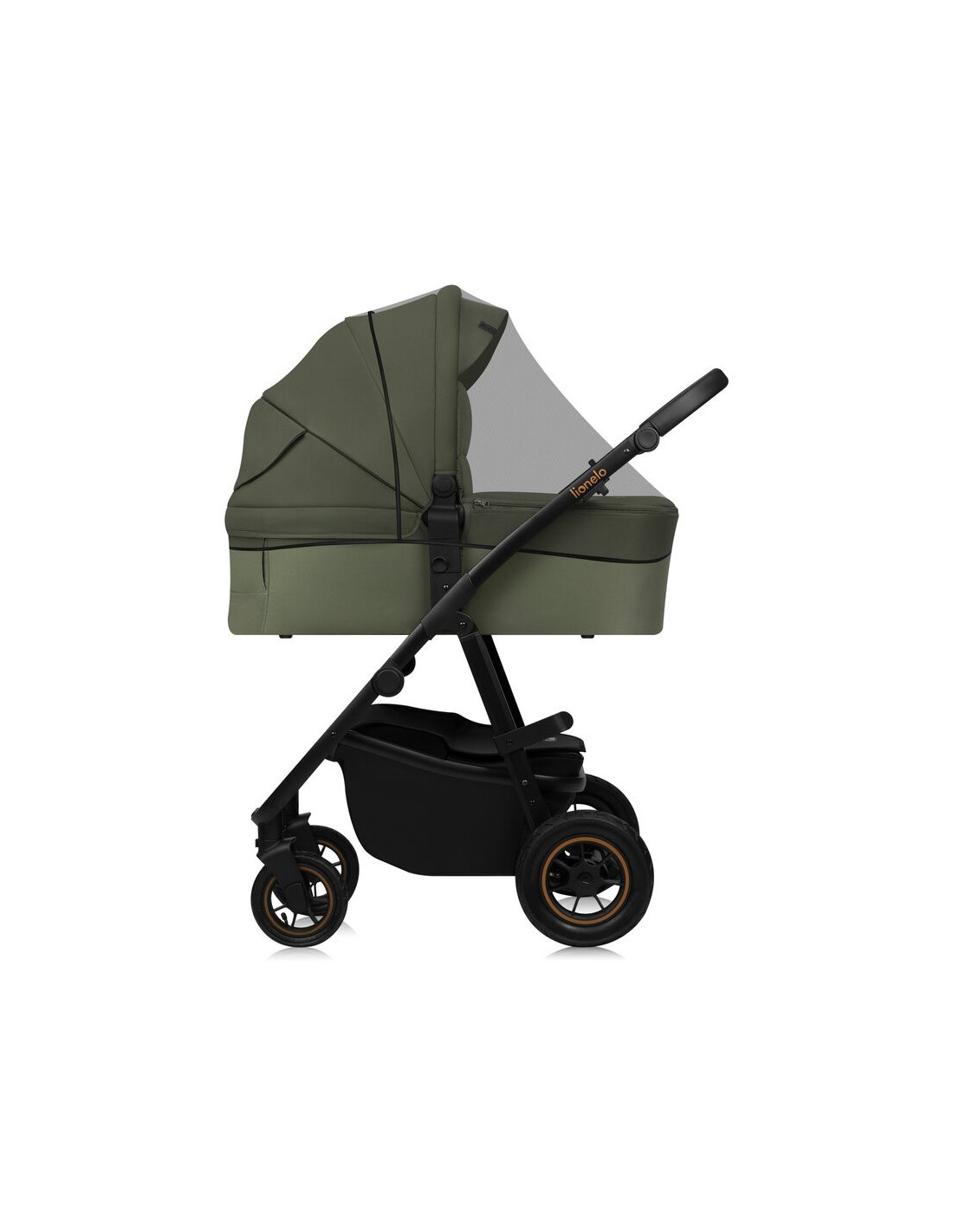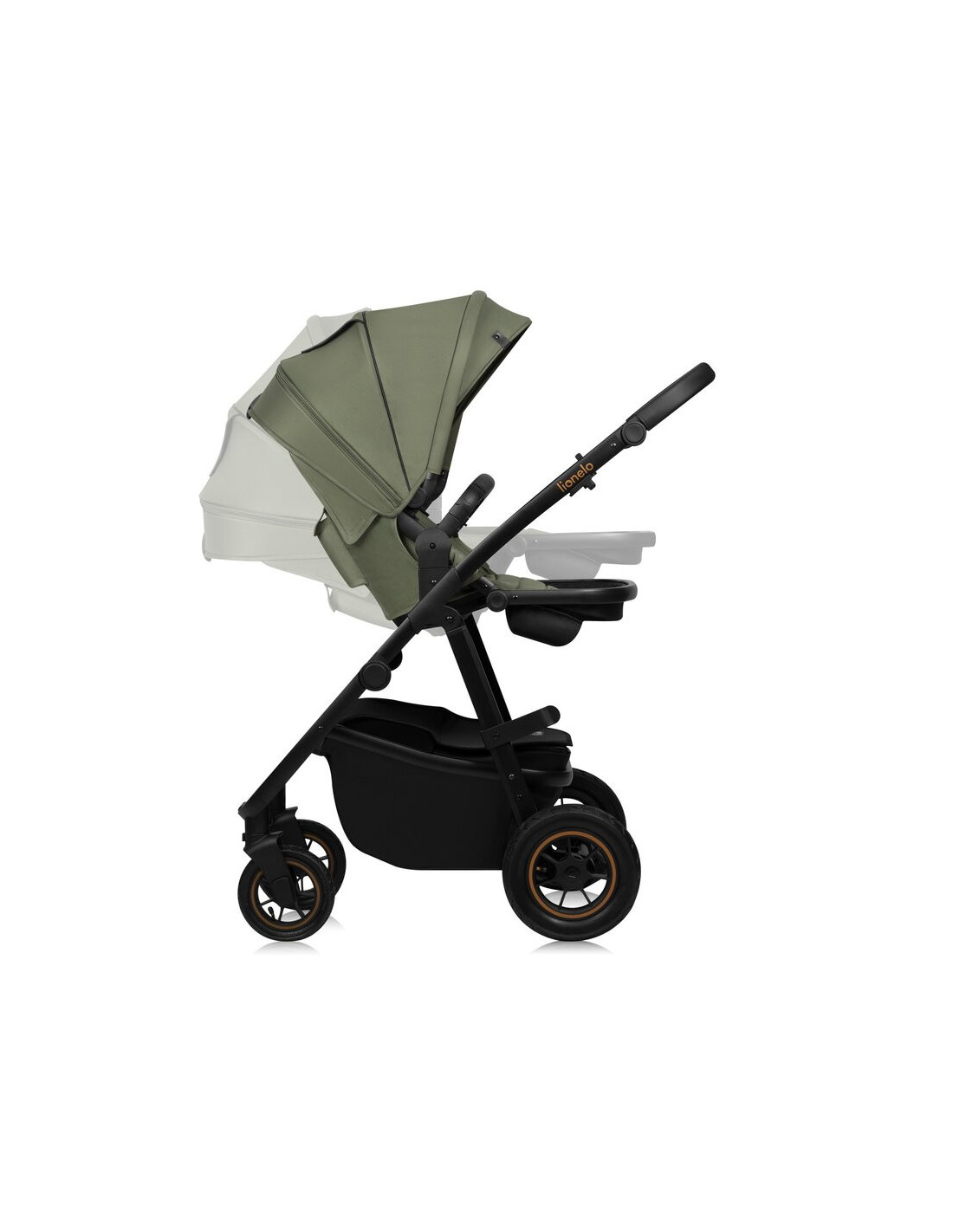 Carucior 3 in 1, Lionelo, Amber Plus, Cadru aluminiu, Cu landou intarit si salteluta moale, Cu scoica auto testata ADAC, Reversibil, Maner ajustabil, Cu accesorii, Cu ventilatie panoramica 3D, Pana la 22 kg, EN1888-1, EN1888-2, EN1466, ECE R129, Verde