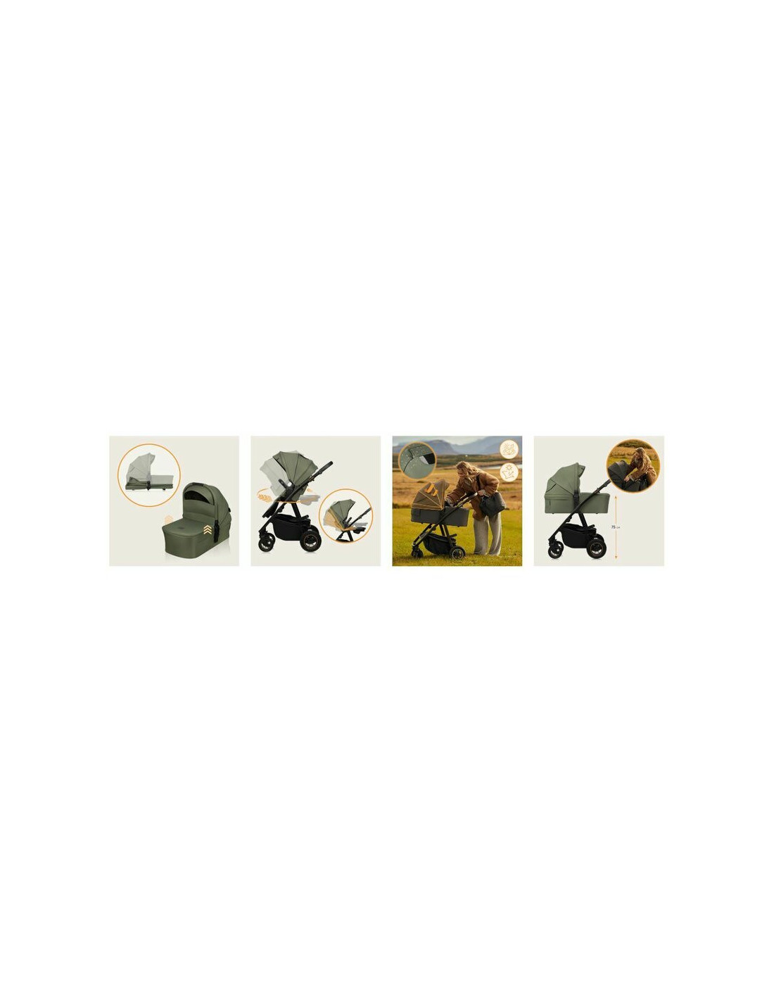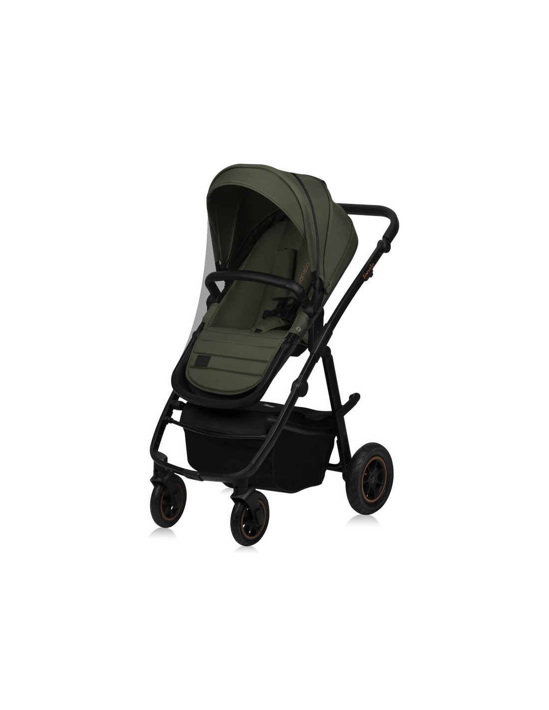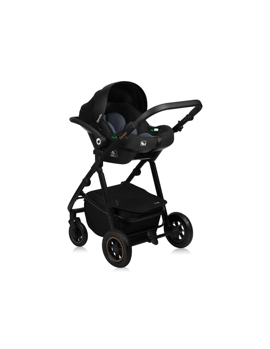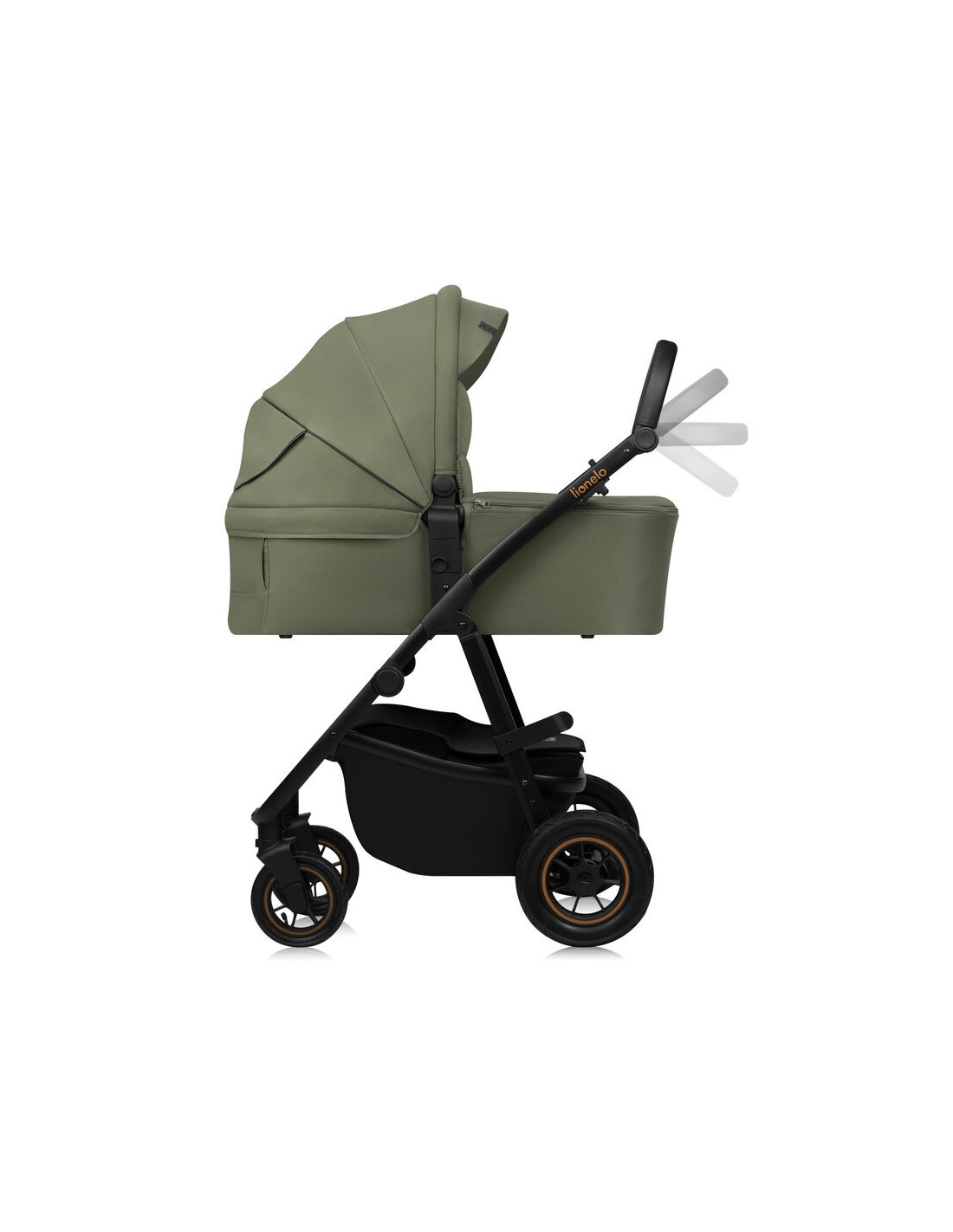 Carucior 3 in 1, Lionelo, Amber Plus, Cadru aluminiu, Cu landou intarit si salteluta moale, Cu scoica auto testata ADAC, Reversibil, Maner ajustabil, Cu accesorii, Cu ventilatie panoramica 3D, Pana la 22 kg, EN1888-1, EN1888-2, EN1466, ECE R129, Verde