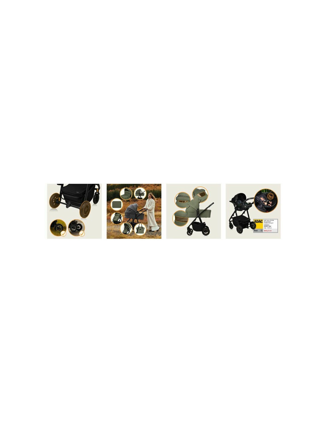 Caruciorul include scaunul auto certificat ADAC, Astrid i-Size, care permite transferul copilului din masina in carucior fara a-l trezi. Scaunul auto se fixeaza cu usurinta pe cadrul caruciorului, oferind o solutie practica pentru calatorii.