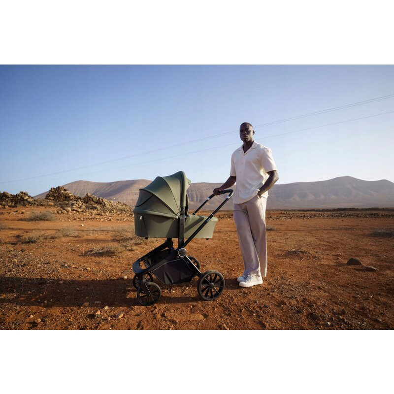Husa caruciorului, fabricata cu un continut ridicat de elastan, ramane neteda si fara cute, in timp ce materialul premium asigura o durabilitate de lunga durata, chiar si in conditii meteorologice dure. Hamul este echipat cu o catarama magnetica speciala pentru o fixare usoara.
