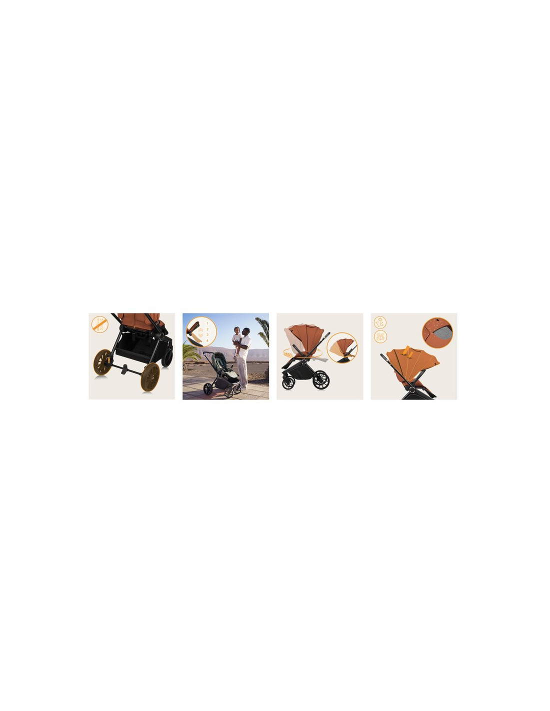 - Fabricat din materiale premium impermeabile si rezistente la cute, caruciorul isi mentine aspectul elegant in orice moment.