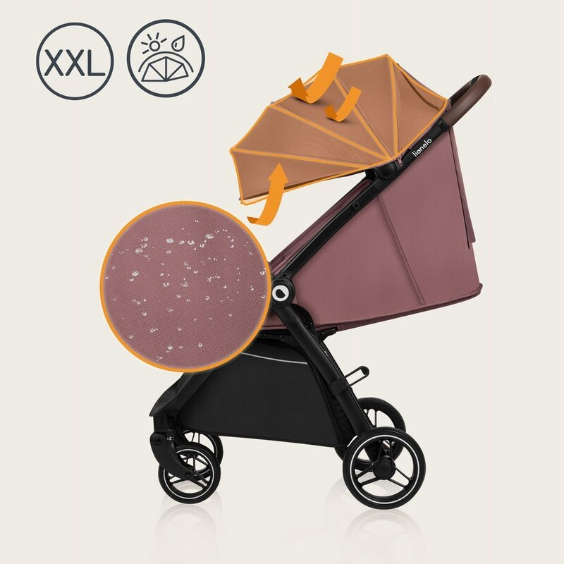 Carucior sport, Lionelo, Ingrid, Capotina impermeabila cu filtru UPF50+, Pana la 22 Kg, Spatar reglabil in 3 pozitii, Include suport pahar si plasa de tantari, Sistem pentru pliere automata, 6 luni+, Roz