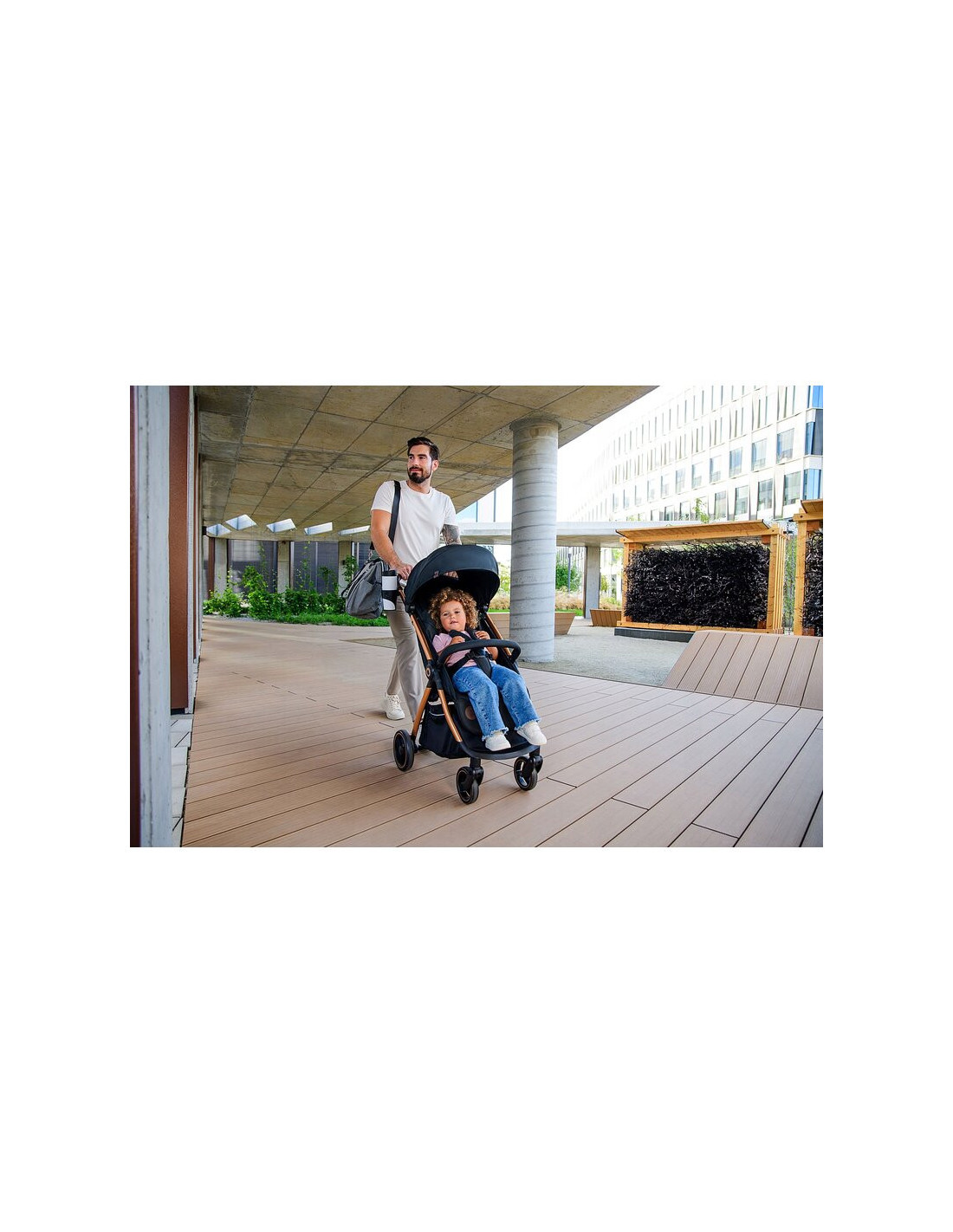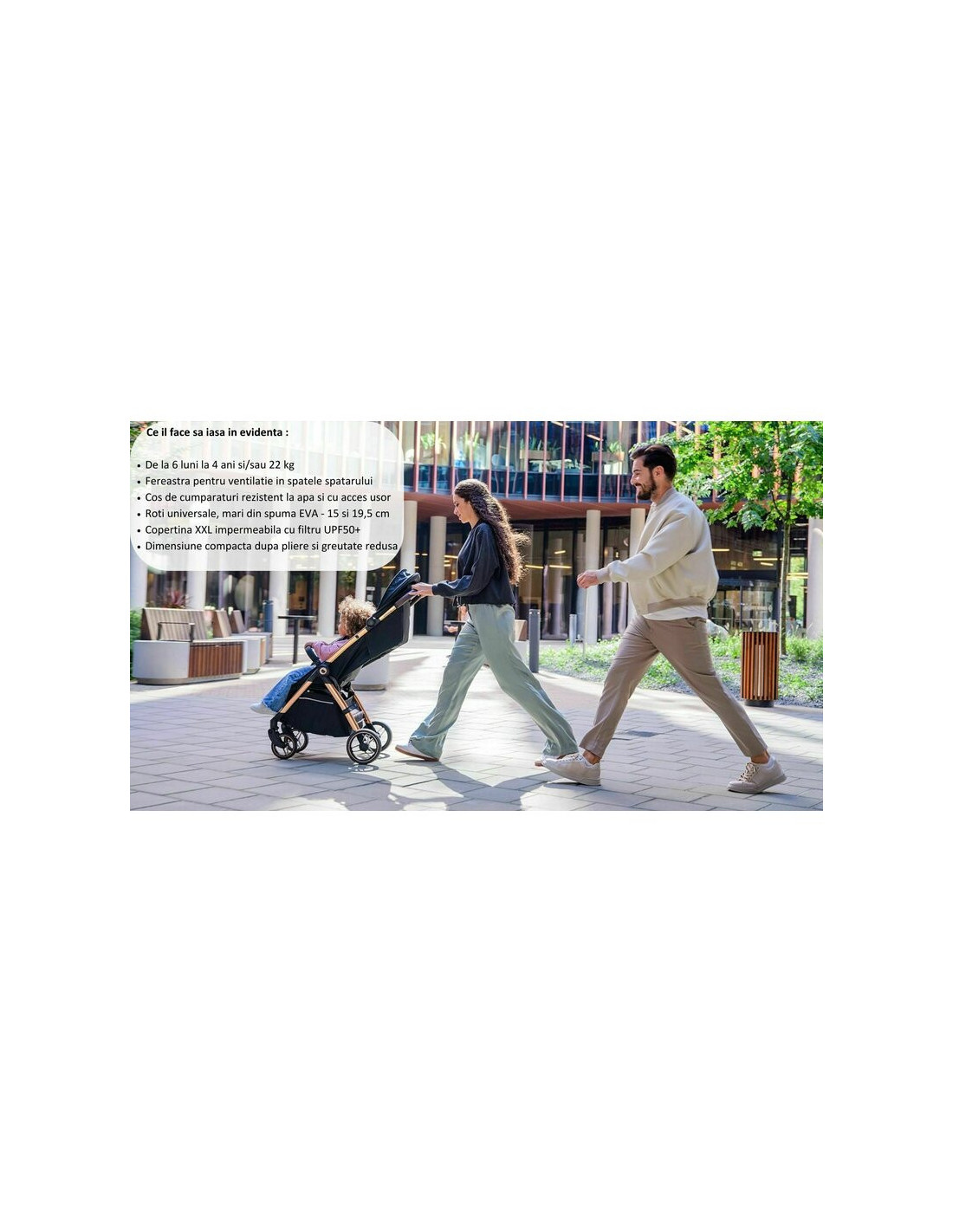 Reglarea in 3 trepte a spatarului, cu posibilitatea asezarii pe spate, asigura confort in timpul fiecarei plimbari. Panoul panoramic inovator de ventilatie, aflat in spatele spatarului, asigura circulatia aerului chiar si in cele mai calduroase zile.