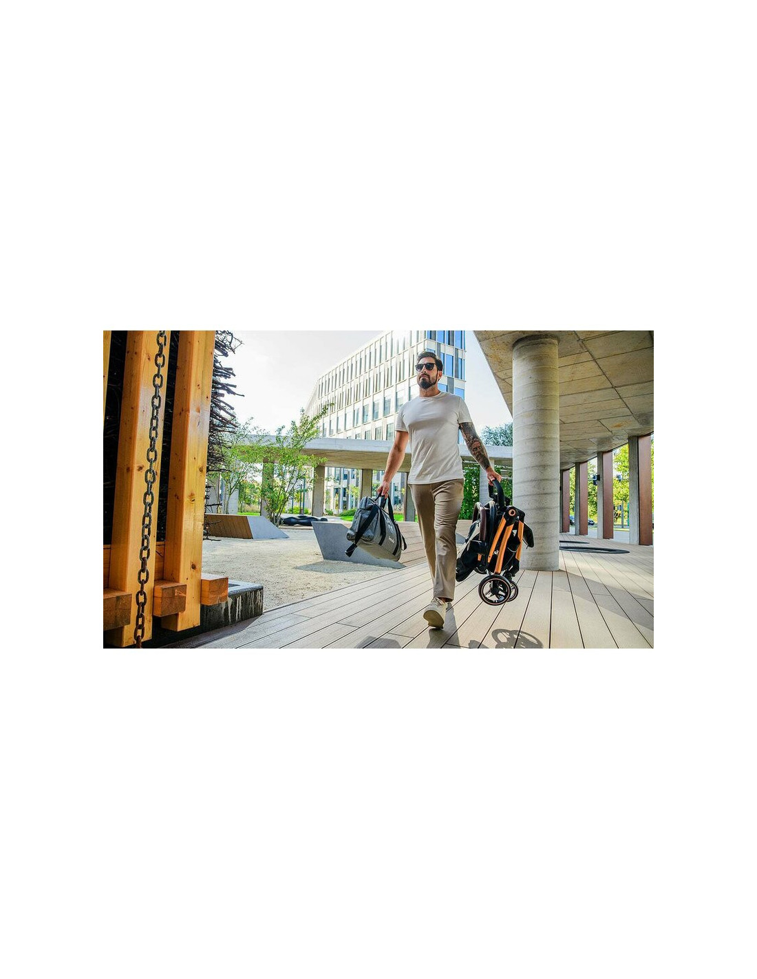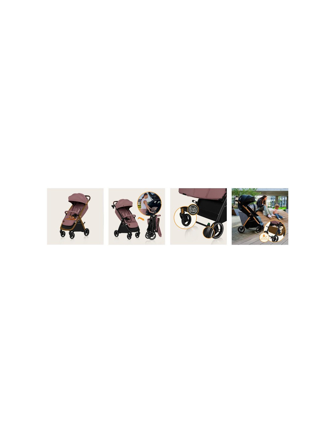 Caruciorul este echipat cu un sistem de pliere automata, astfel incat, prin apasarea unui buton si deblocarea, caruciorul se pliaza automat in dimensiuni compacte. Totul se face cu o singura mana.