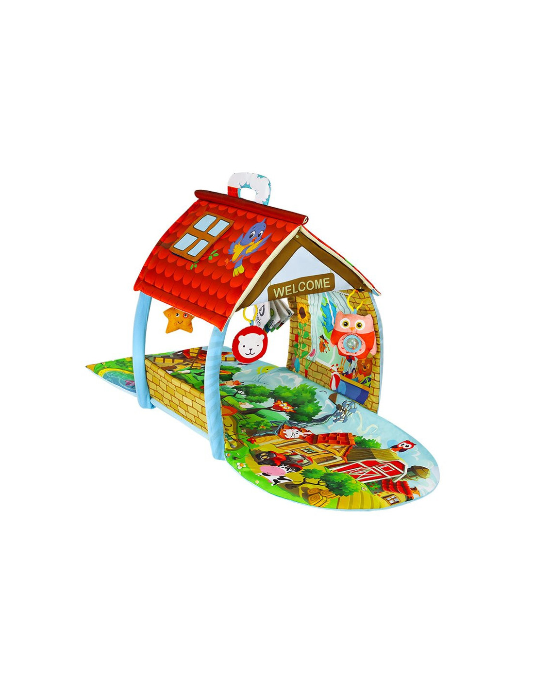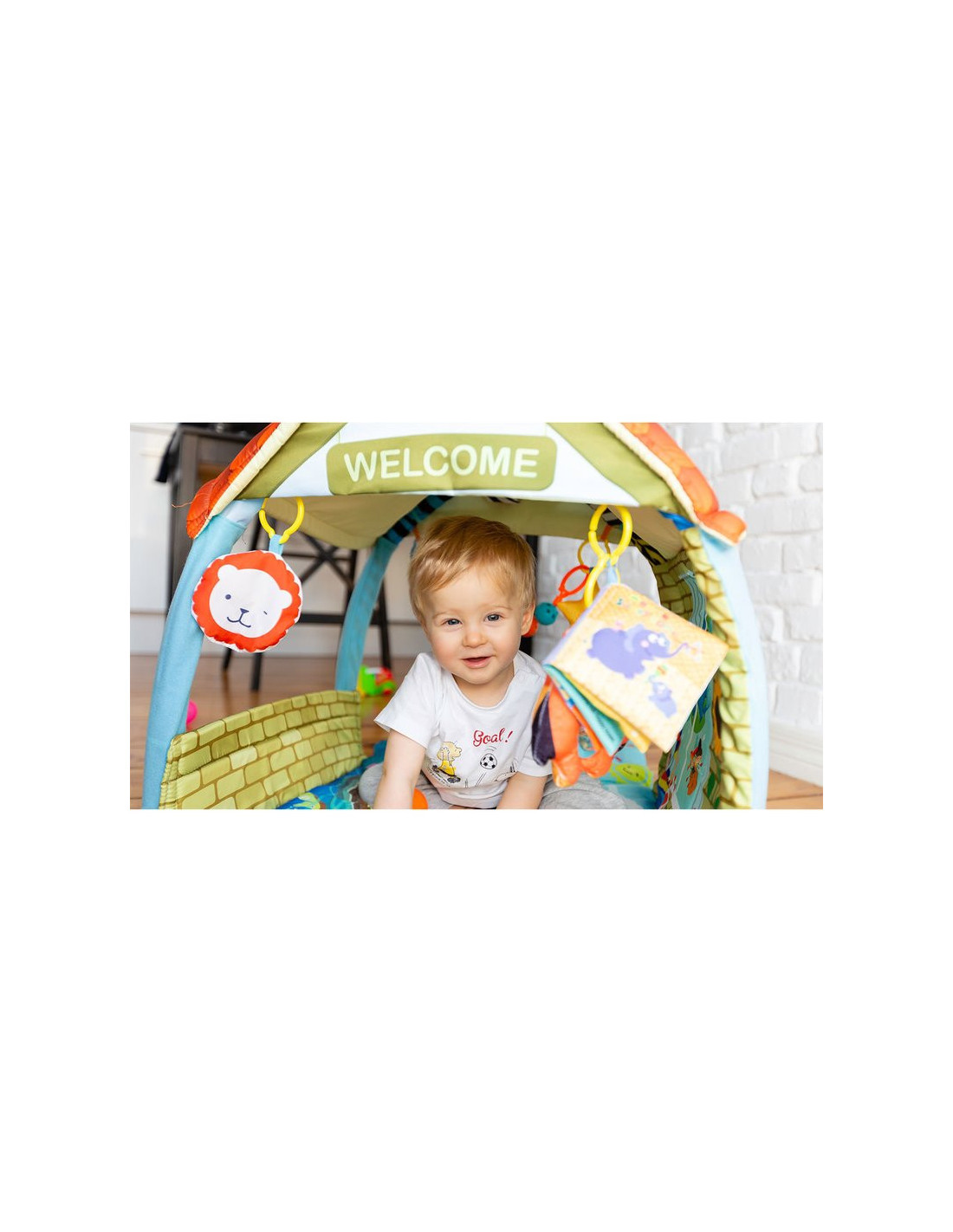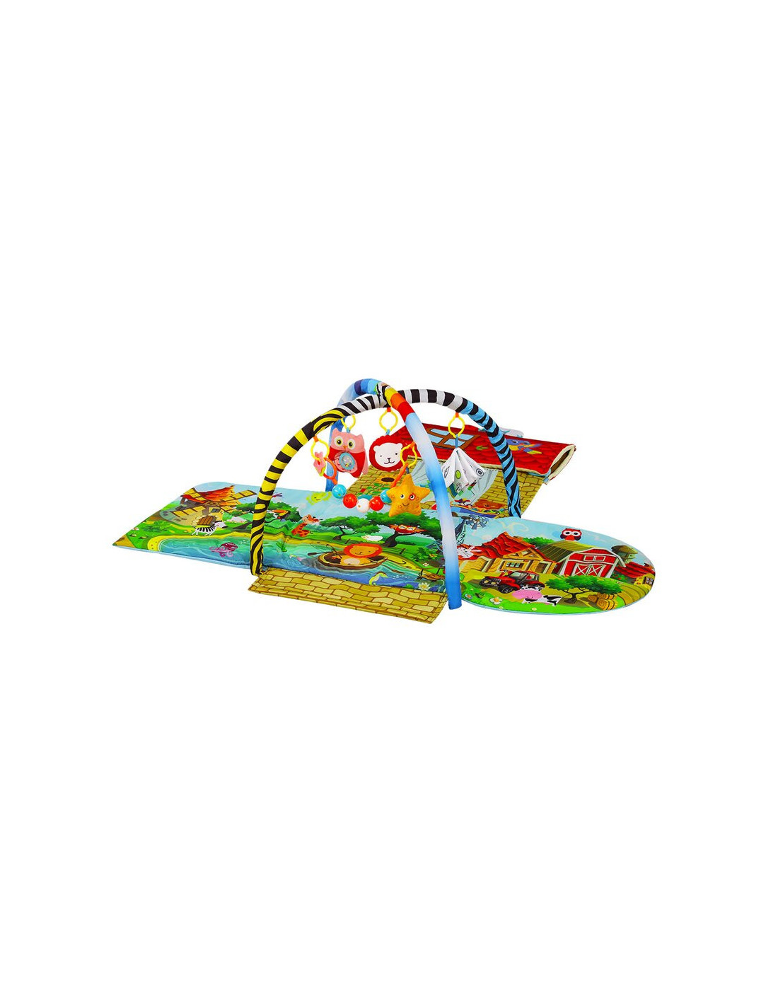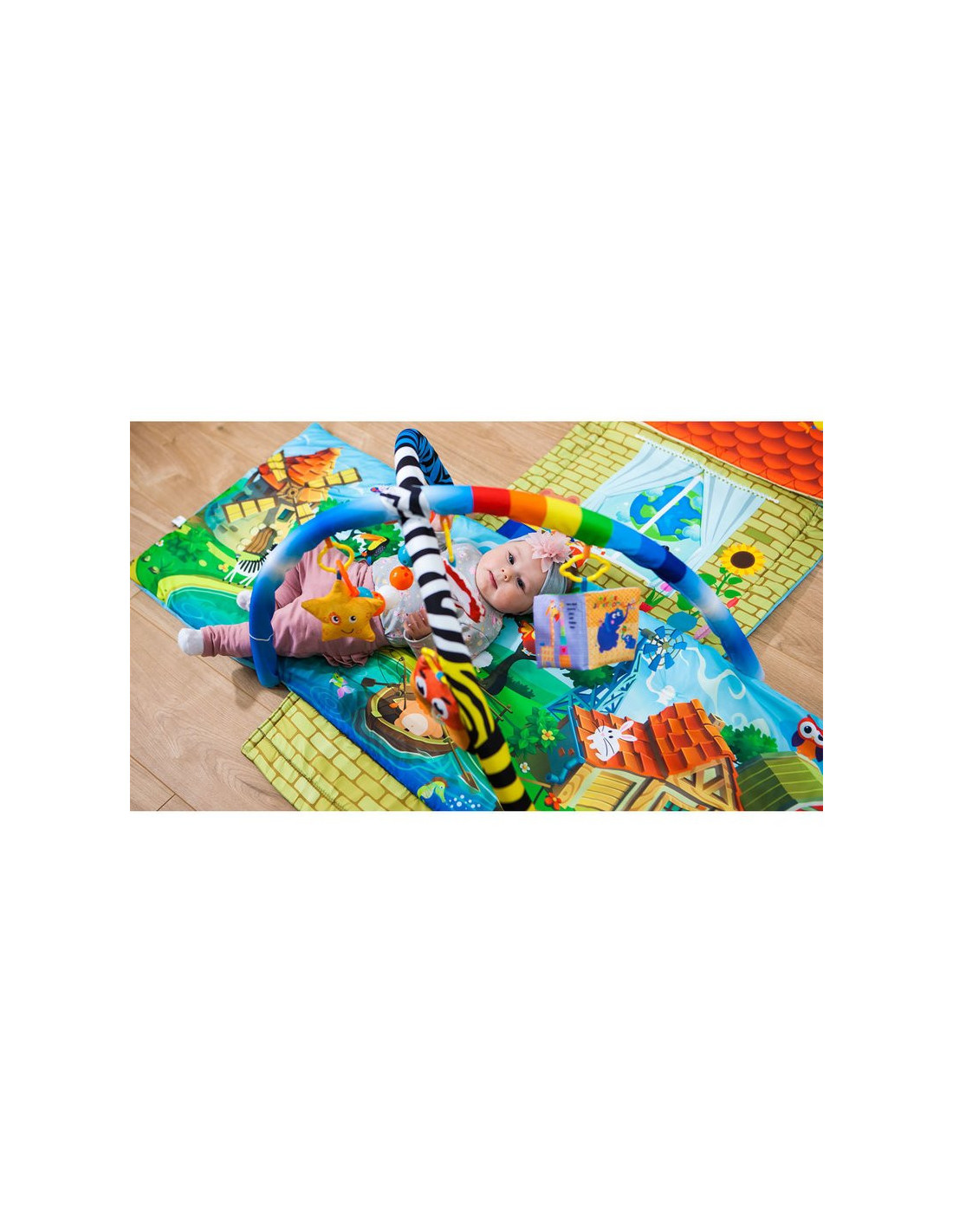 - Culorile intense stimuleaza simtul vederii, iar jucariile incurajeaza bebelusul sa fie activ si sa faca miscare, contribuind la dezvoltarea si intarirea muschilor.