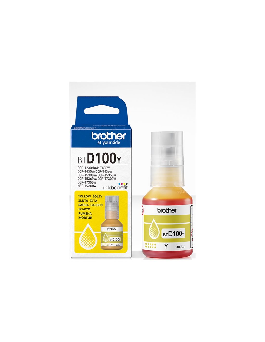• Flacon cerneală original Brother BT-D100Y – Galben (Yellow).